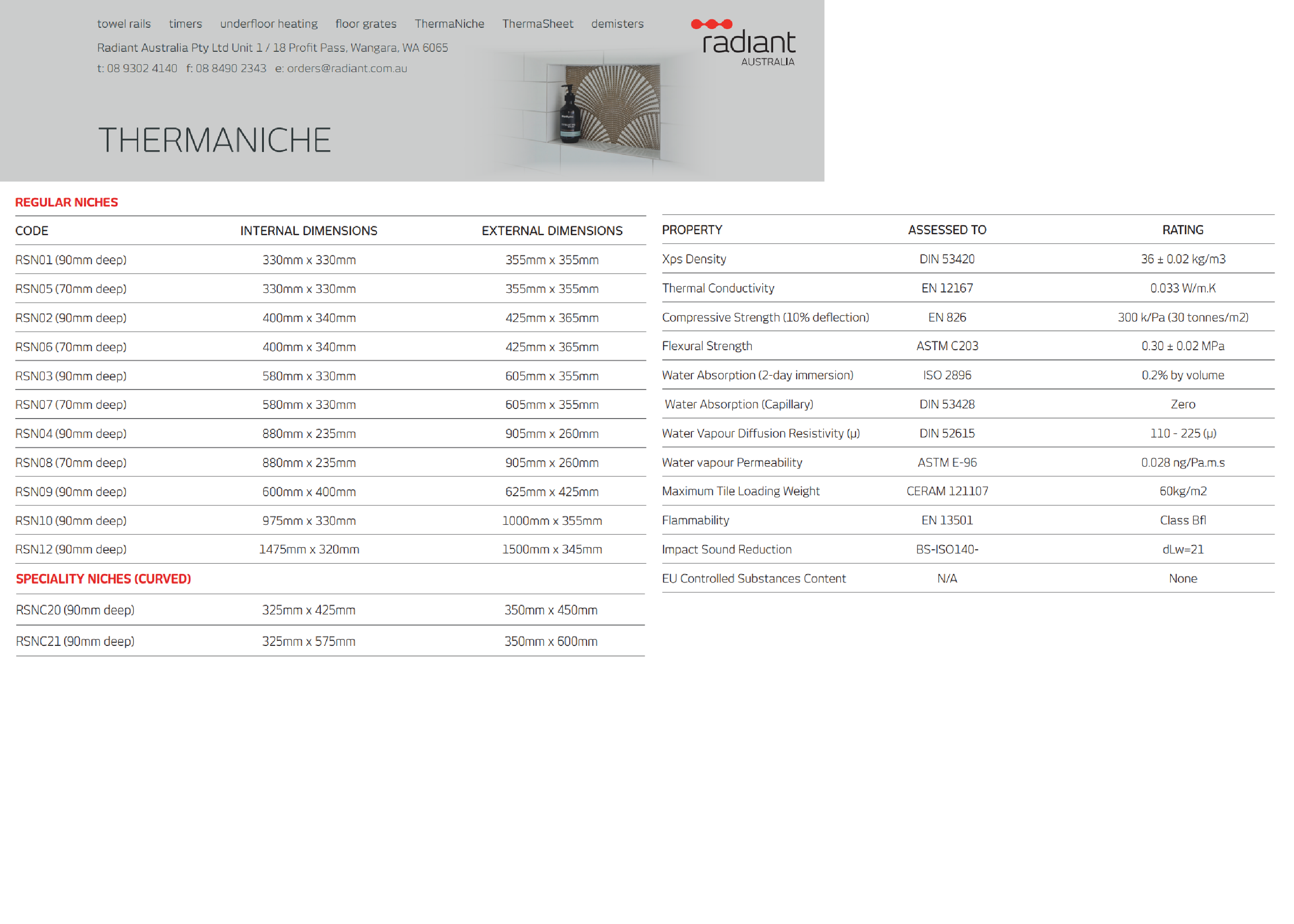 Pre-fabricated niches are a perfect solution for easily adding a niche into a shower or bathroom area. Manufactured from a one-piece construction high-density polystyrene core, with a liquid applied waterproof sealant that provides a ready-made waterproof substrate, ThermaNiches are versatile, easy to install and ready to tile in minutes. Guaranteed never to rot, degrade or leak, they’re perfect for those bath and shower necessities to be in exactly the position you choose. 10x specialist fixings and screws provided in pack