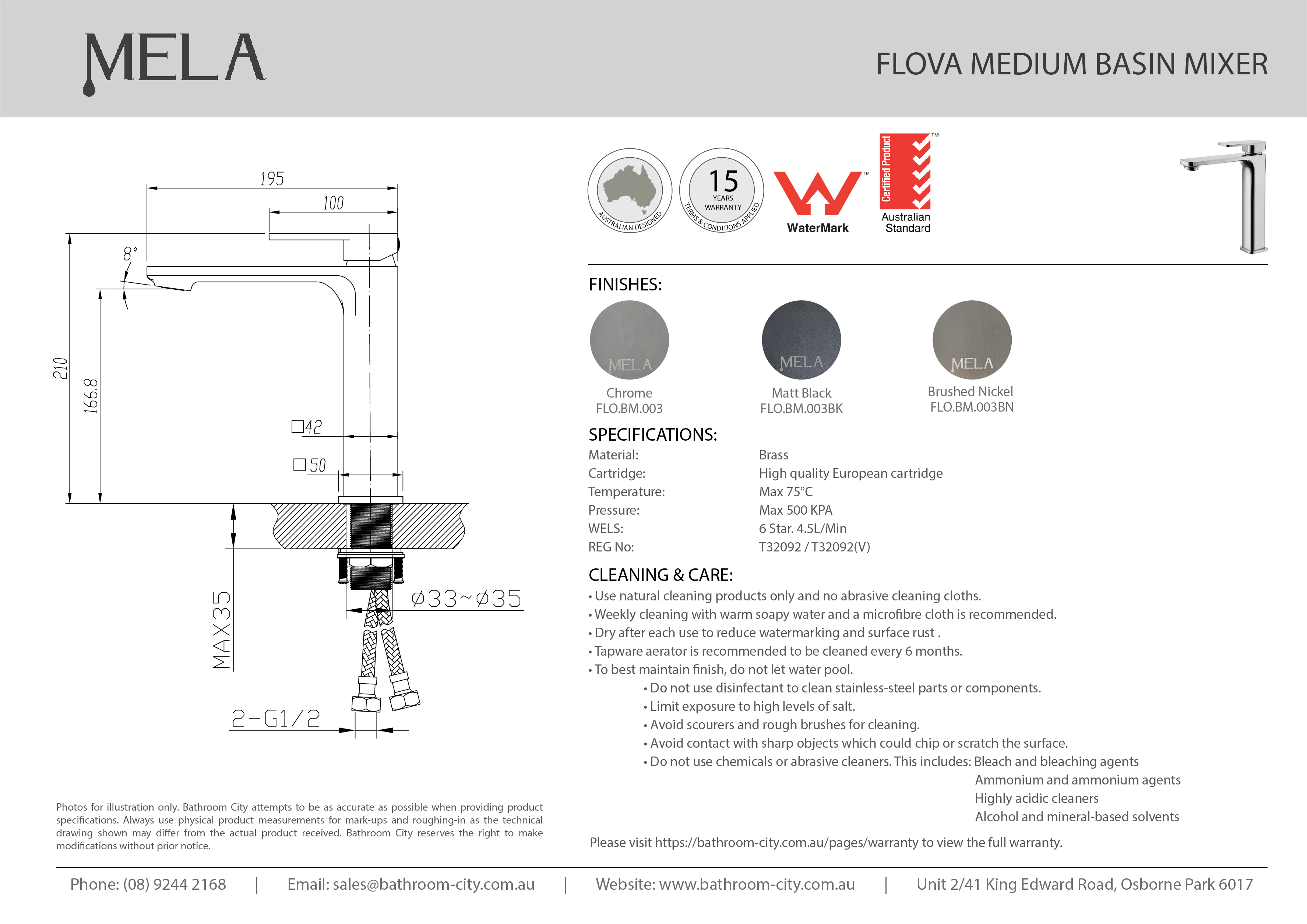 | Model Name | MELA- FLOVA Medium Basin Mixer Chrome |