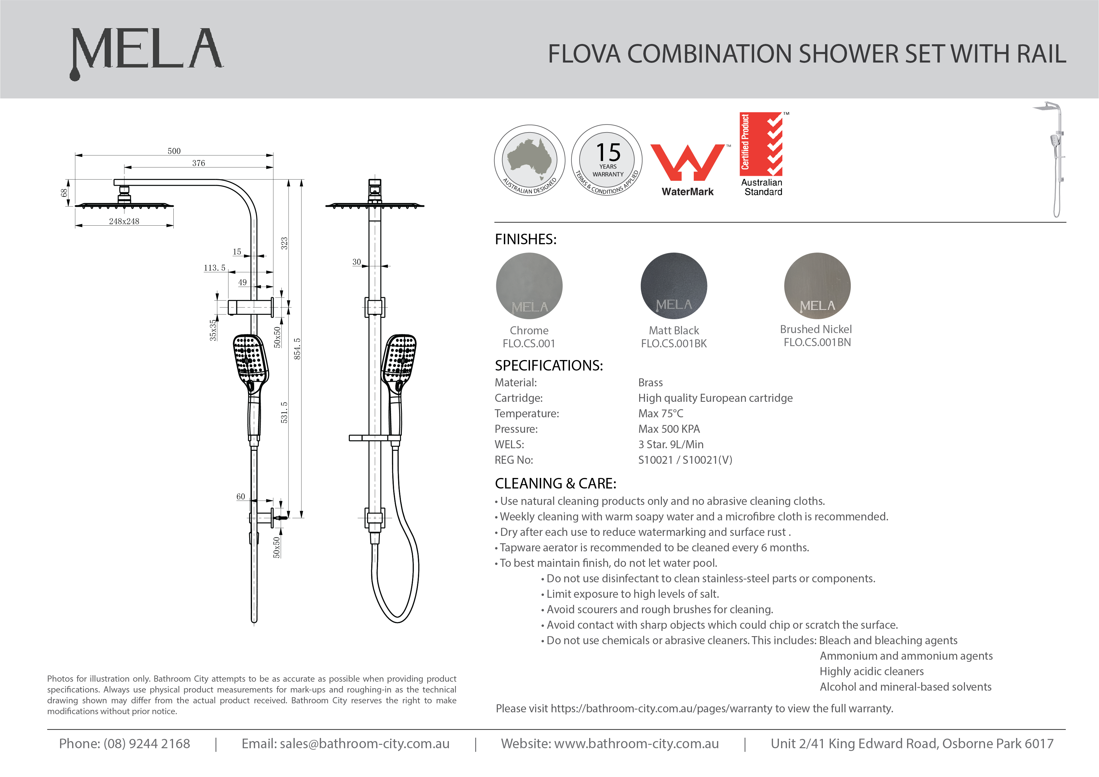| Model Name | MELA- FLOVA Twin Combo Shower Set with Rail Chrome |