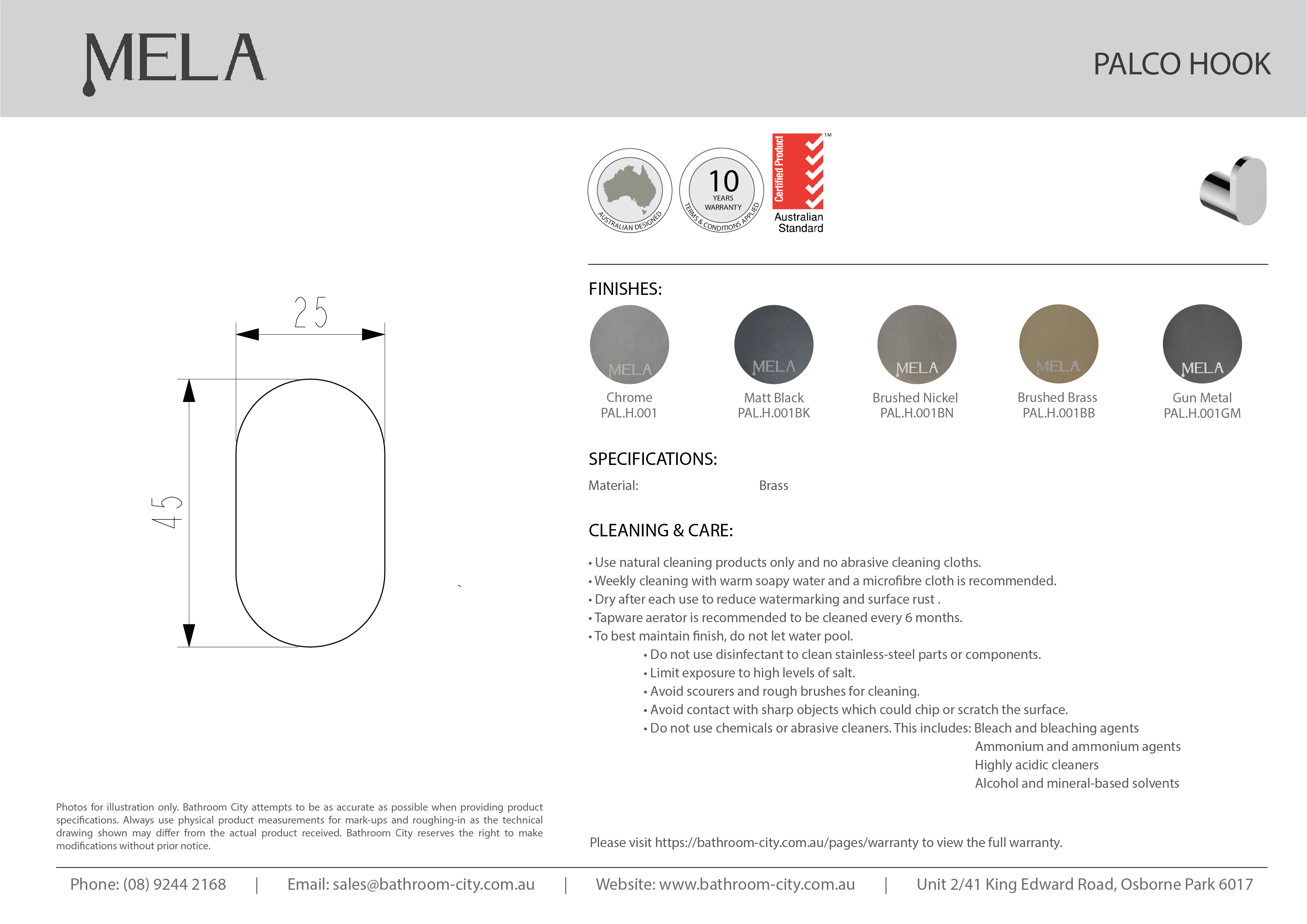 For best results, please follow our Care Guide. Regular cleaning with non-abrasive products will help extend the life of your bathroom fittings and keep them looking new.
