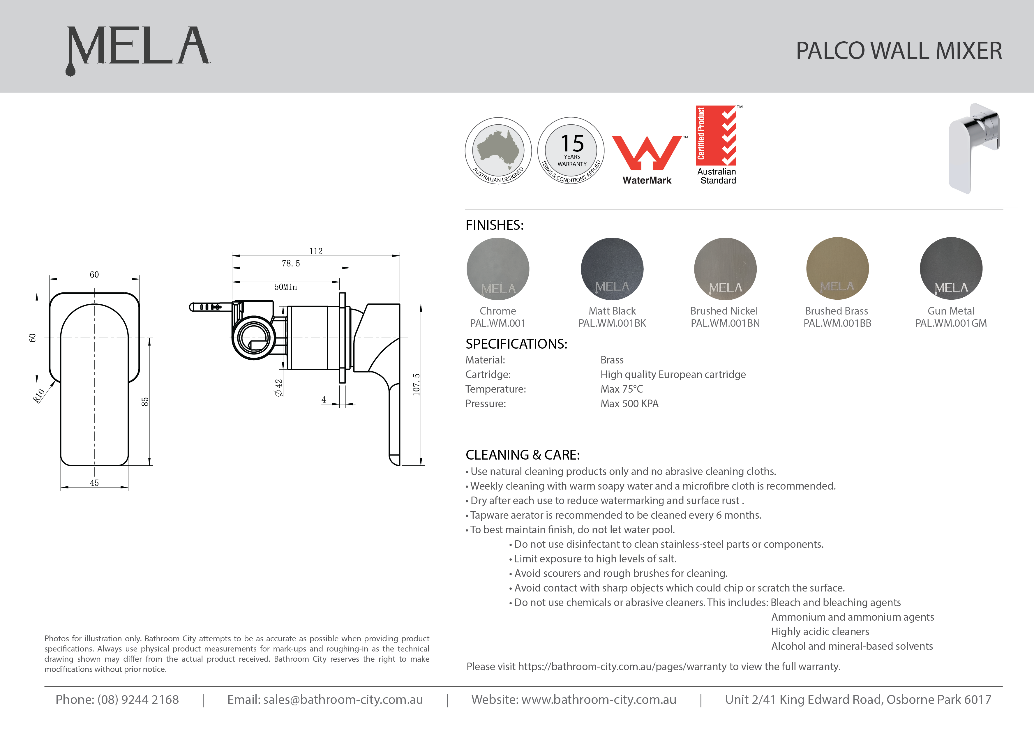 Model Name MELA- PALCO Shower/Bath Wall Mixer Chrome