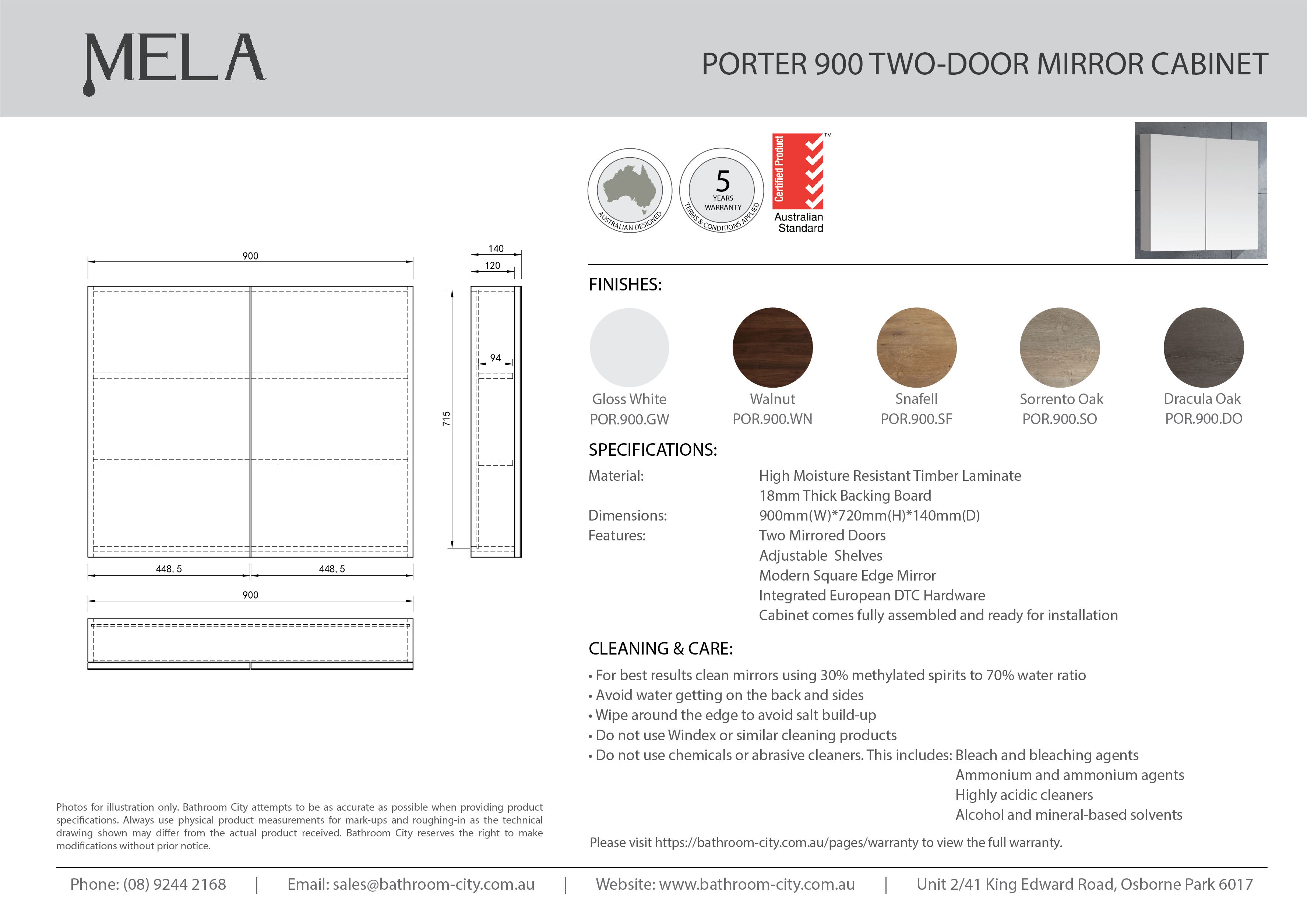 *PLEASE DRY THE CABINET WITH A SOFT CLOTH AFTER USE. DO NOT ALLOW TO REMAIN WET