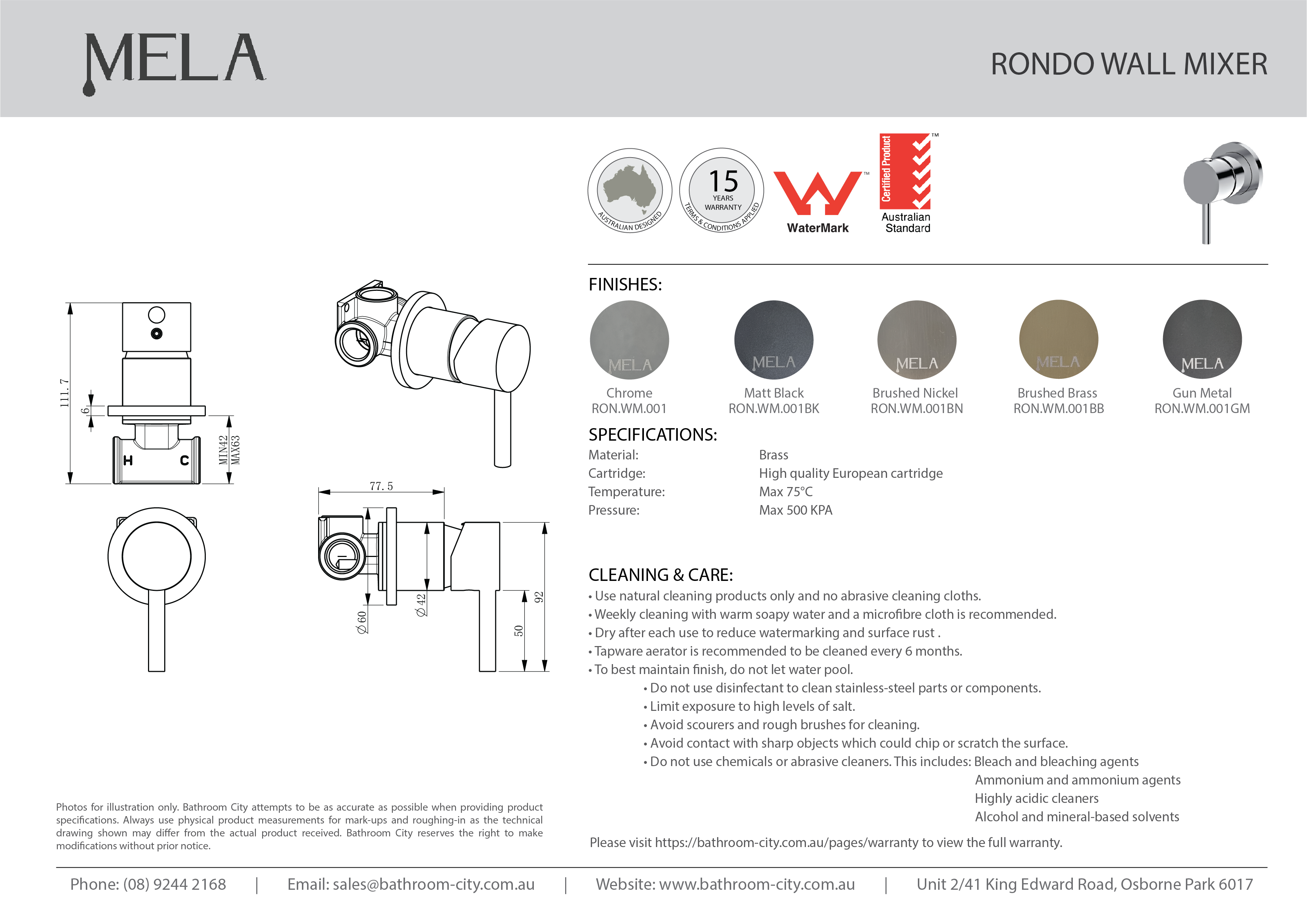 | Model Name | MELA- RONDO Shower/Bath Wall Mixer Brushed Brass |