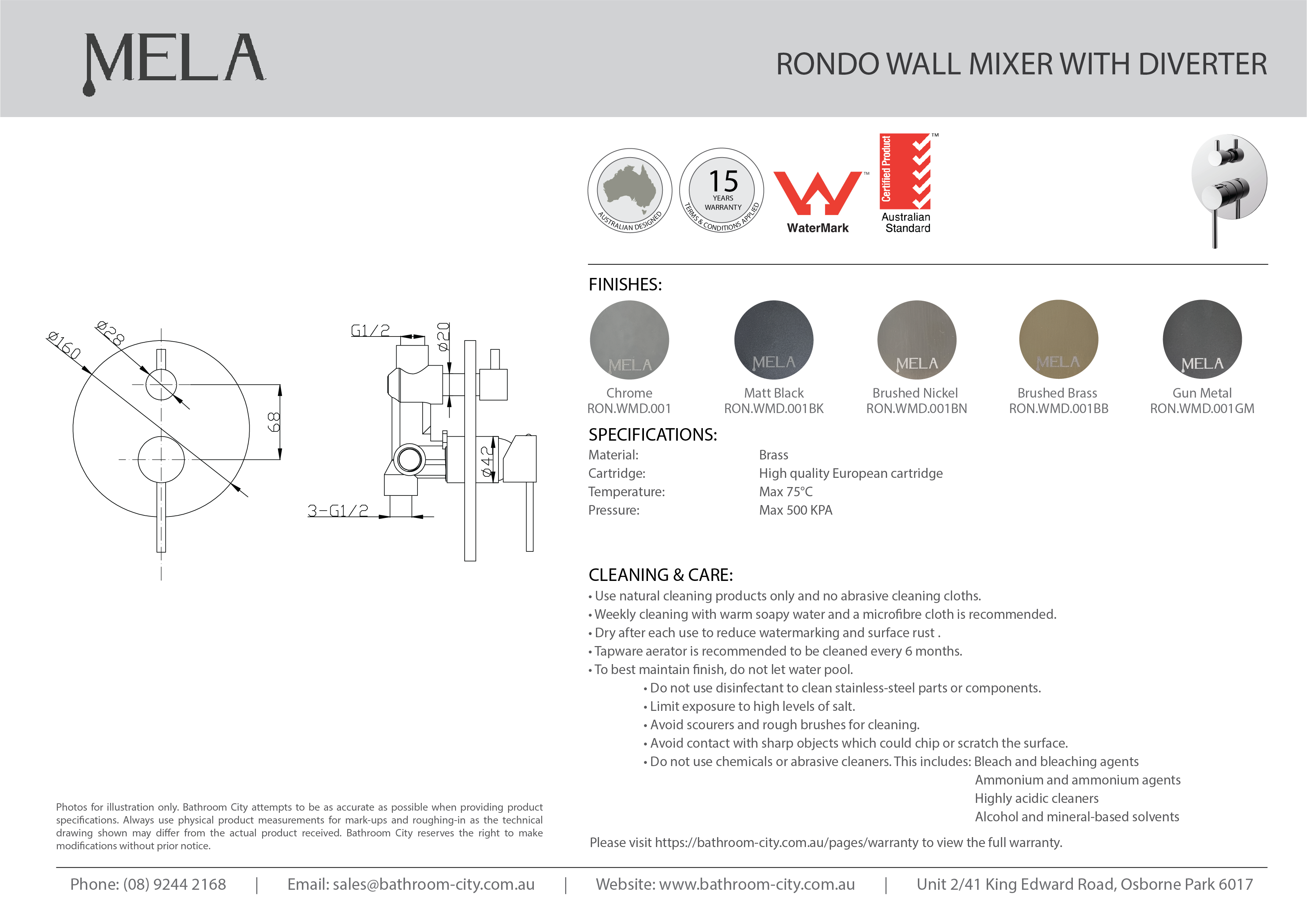 | Model Name | MELA- RONDO Shower/Bath Wall Mixer with Diverter Brushed Nickel |