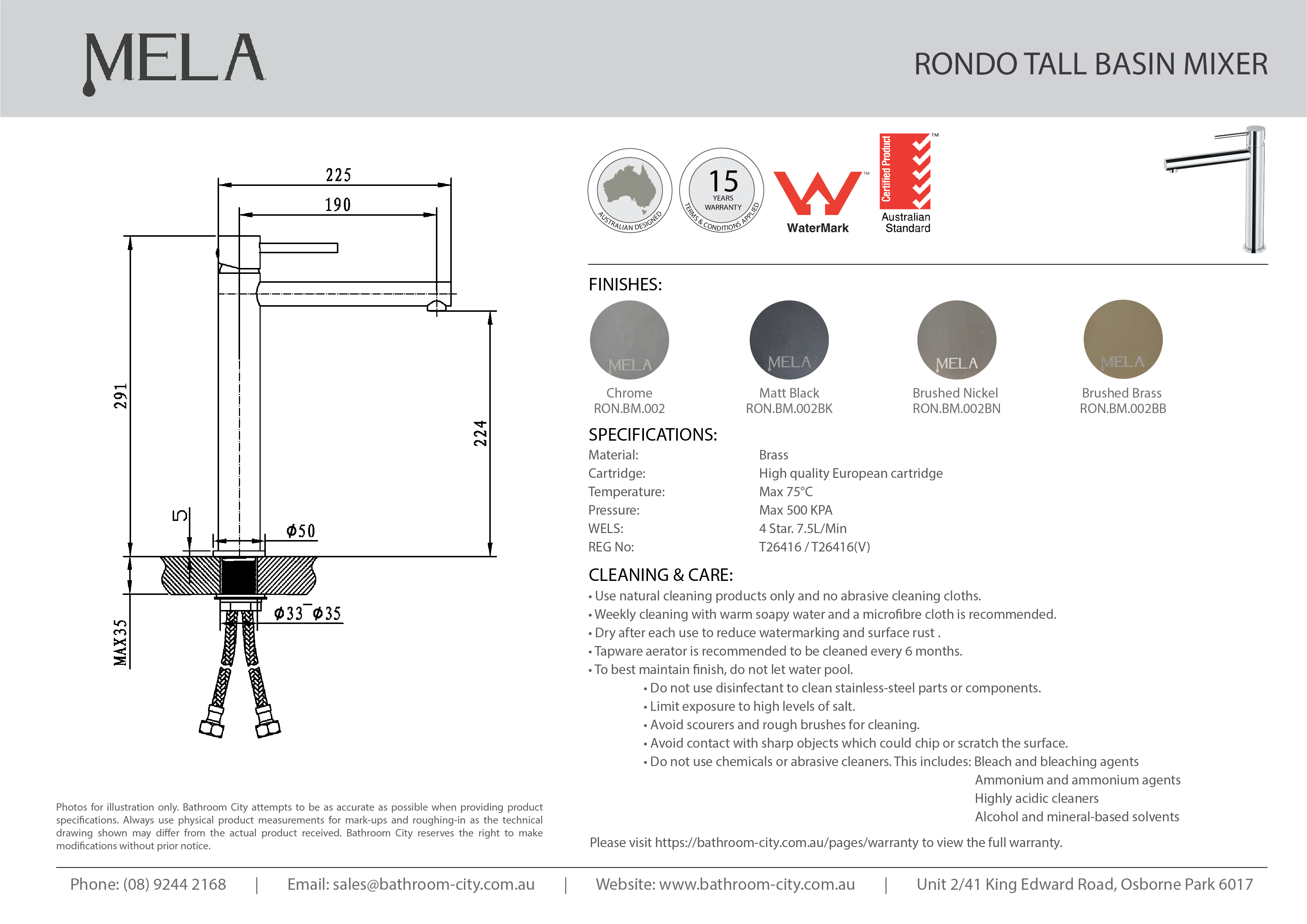 | Model Name | MELA- RONDO Tall Basin Mixer Black |
