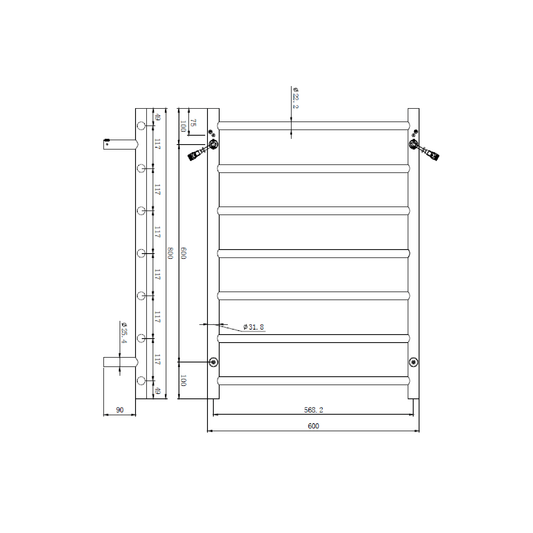 RADIANT - BRU-RTR01 Heated Round Ladder 600x800mm Brushed Satin