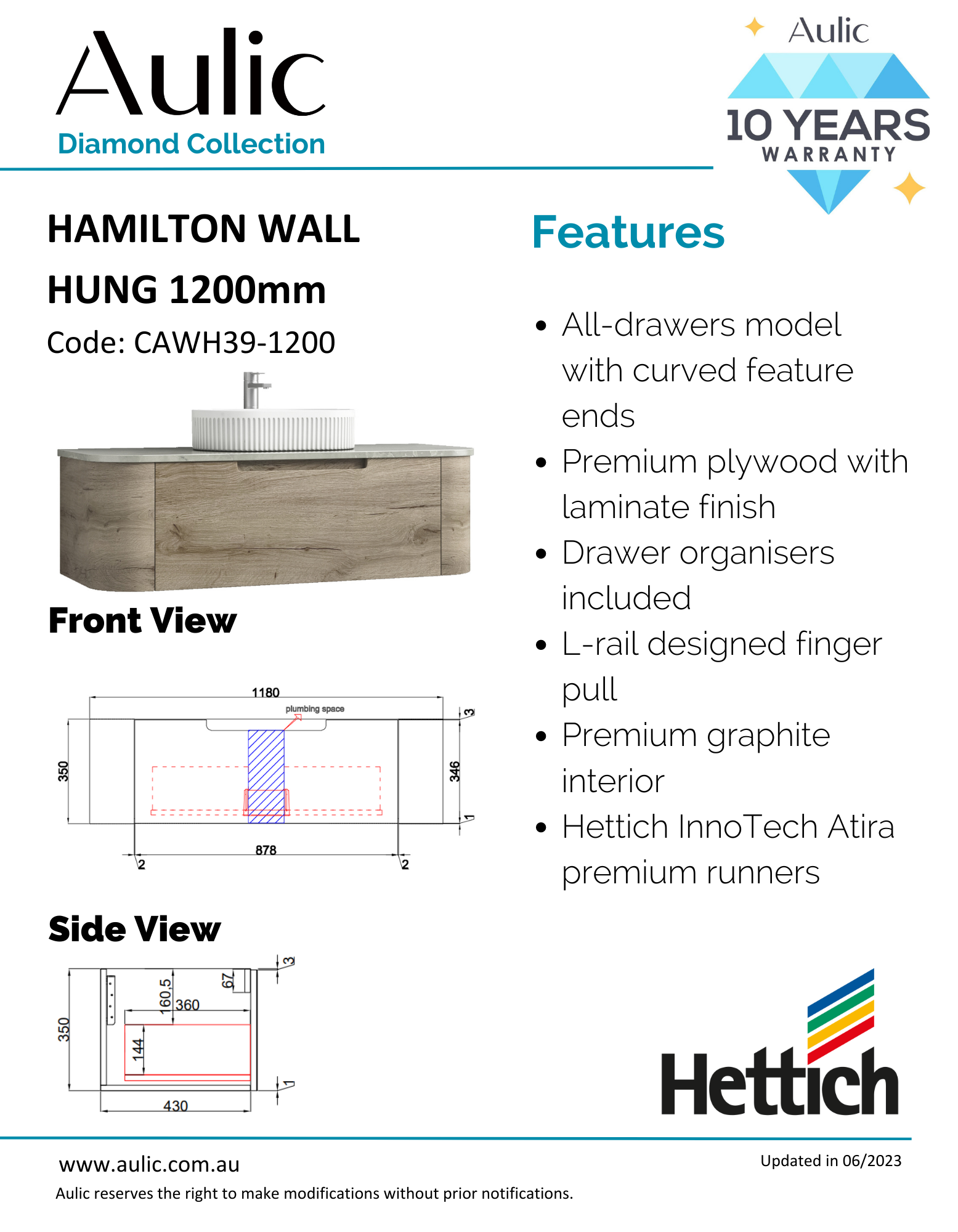 Model Name: AULIC - Hamilton Wall Hung 1200mm