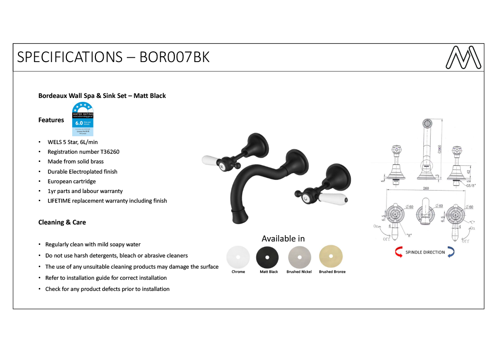 | Model Name | MODERN NATIONAL- BORDEAUX Kitchen Mixer Matt Black |