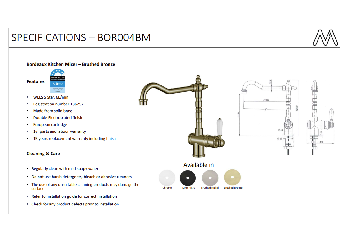 | Model Name | MODERN NATIONAL- BORDEAUX Kitchen Mixer Brushed Bronze |