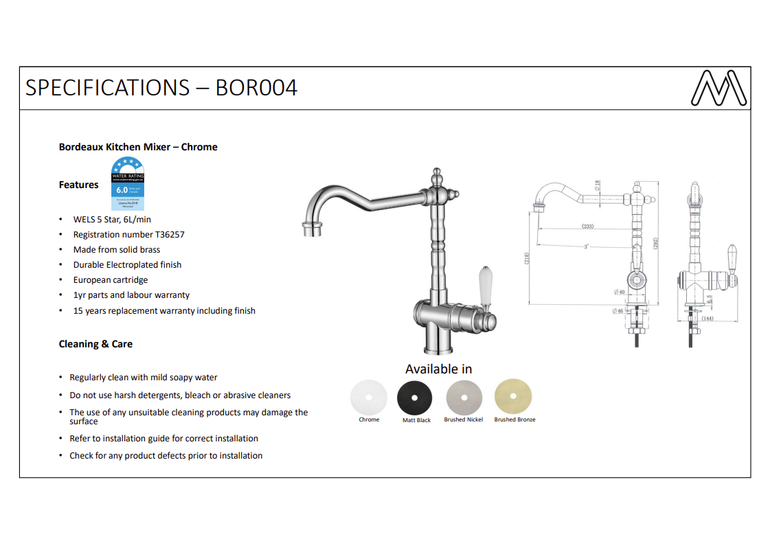 Model Name MODERN NATIONAL- BORDEAUX Kitchen Mixer Chrome
