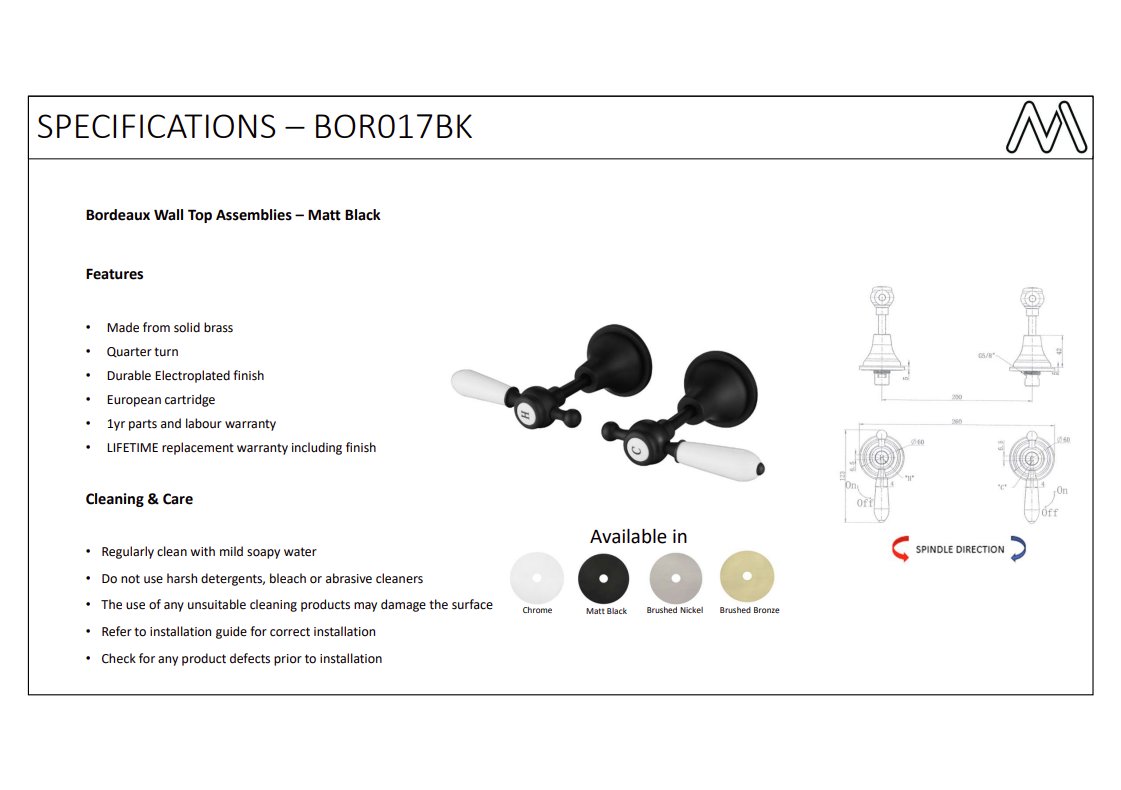 | Model Name | MODERN NATIONAL- BORDEAUX Wall Tops 1/4 Turn Matt Black |