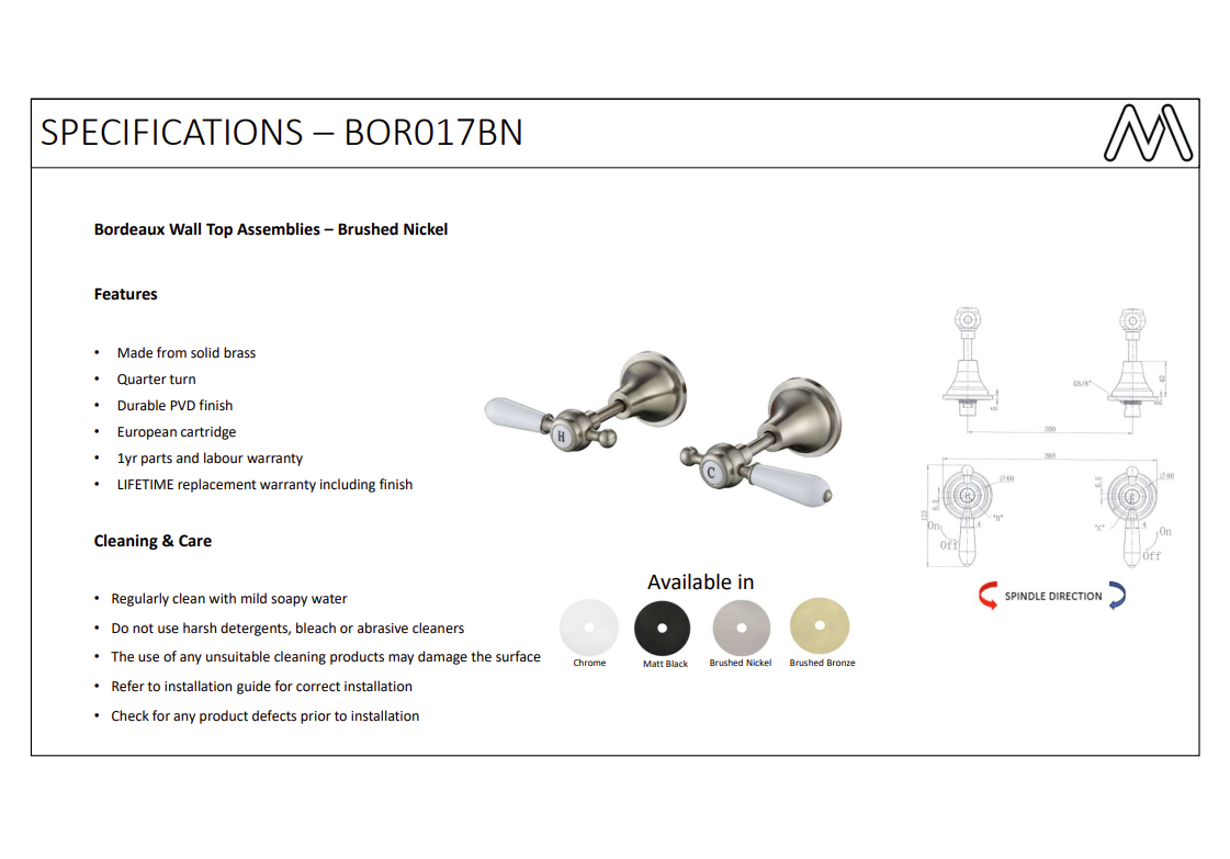 | Model Name | MODERN NATIONAL- BORDEAUX Wall Tops 1/4 Turn Brushed Nickel |