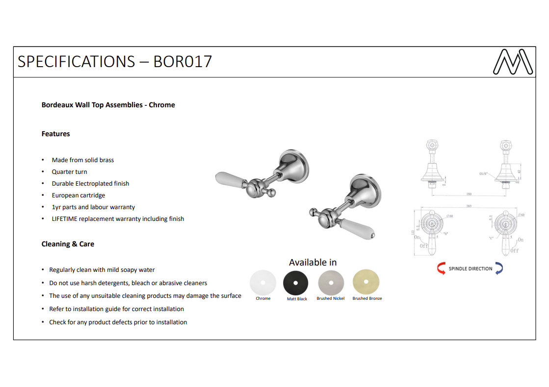 For best results, please follow our Care Guide. Regular cleaning with non-abrasive products will help extend the life of your bathroom fittings and keep them looking new.
