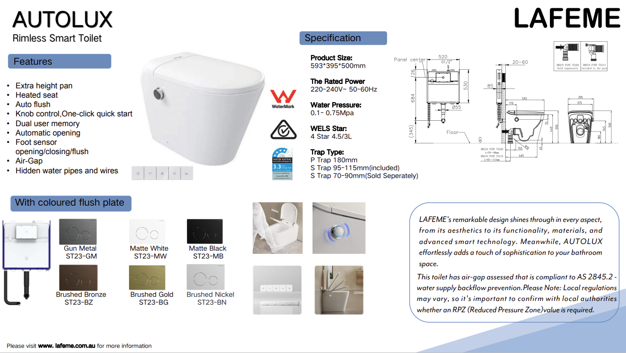 | Model Name | LAFEME - Autolux Rimless Smart Toilet |