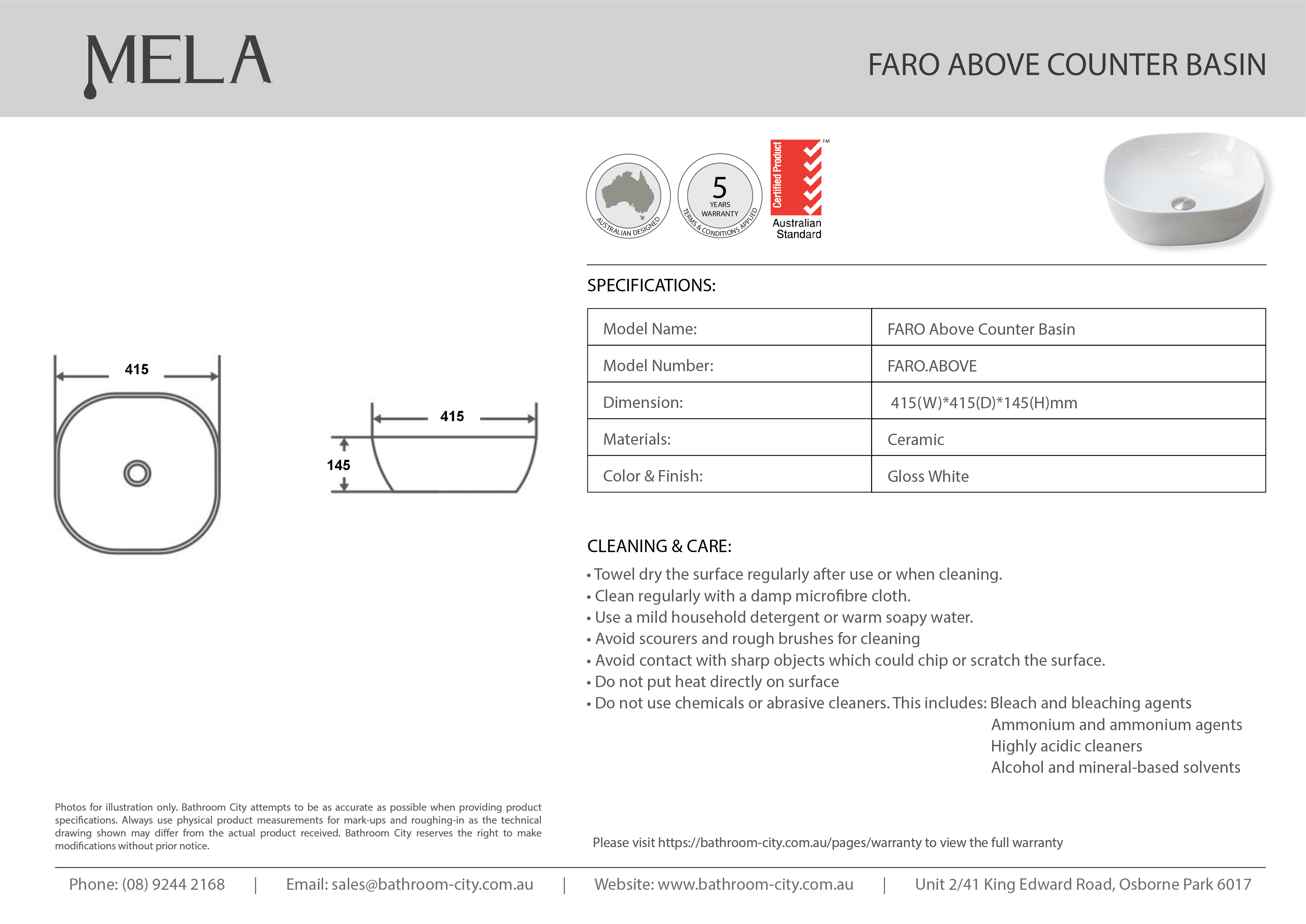 The Faro Basin features a smooth, rounded-square profile with gentle but more pronounced flowing edges that create a calm, contemporary presence. Its softly expanded shape feels open and inviting, while the subtle curvature adds an elegant touch of refinement. Designed to sit beautifully above the counter, the Faro Basin brings a harmonious blend of modern simplicity and organic softness, making it a versatile addition to a wide variety of bathroom styles.