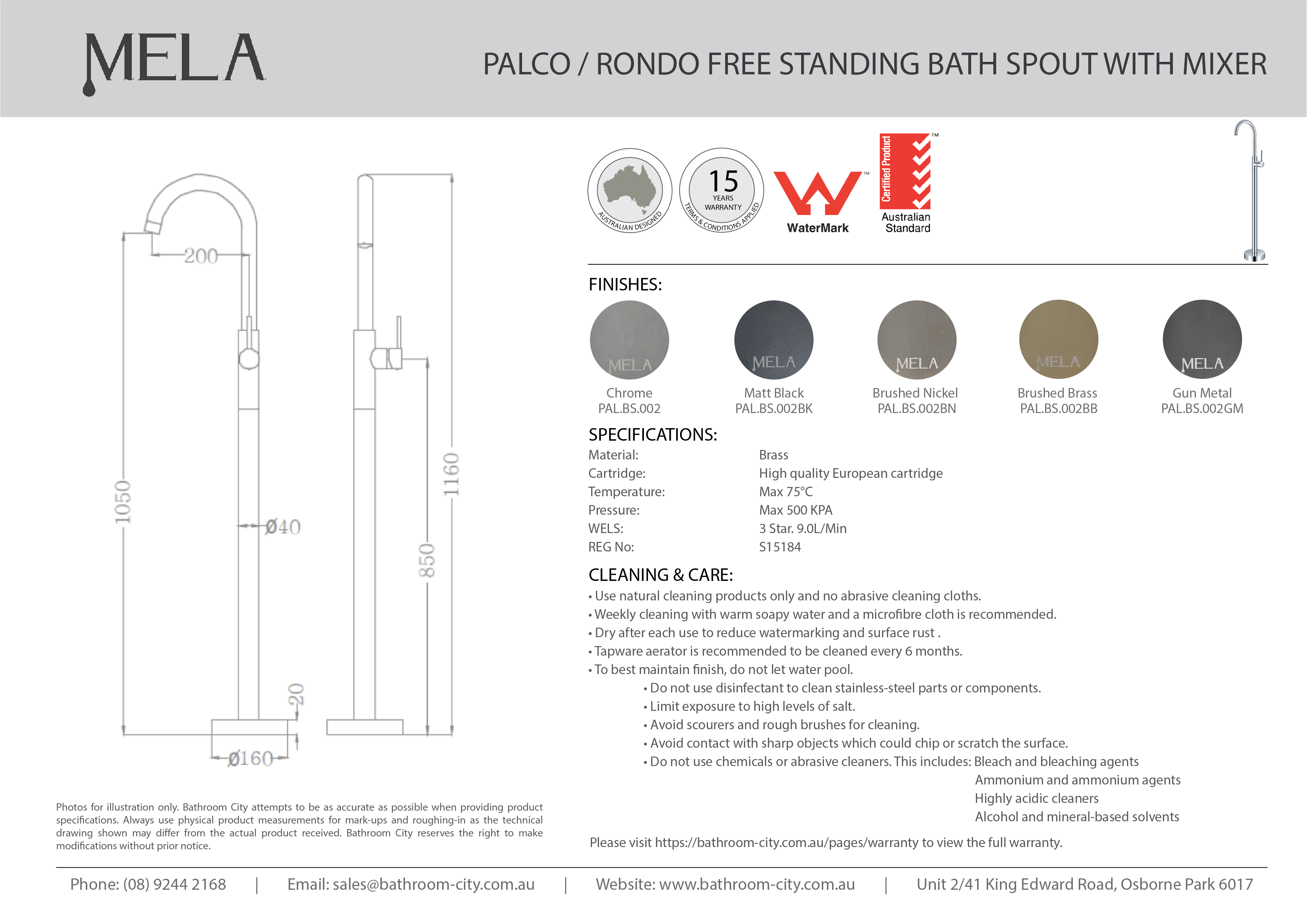 | Model Name | MELA- PALCO/RONDO Free Standing Bath Spout and Mixer Black |