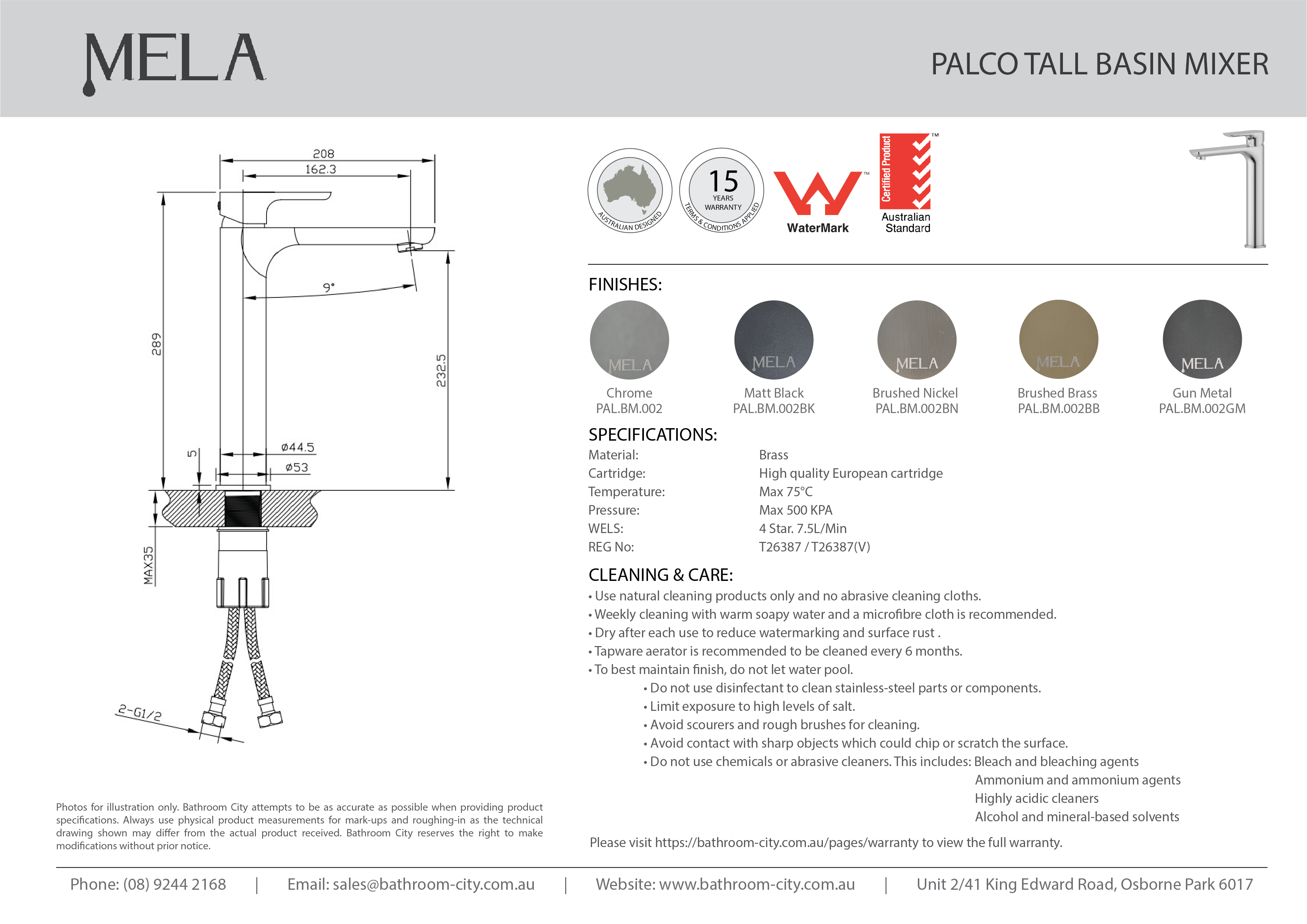 | Model Name | MELA- PALCO Tall Basin Mixer Gun Metal |