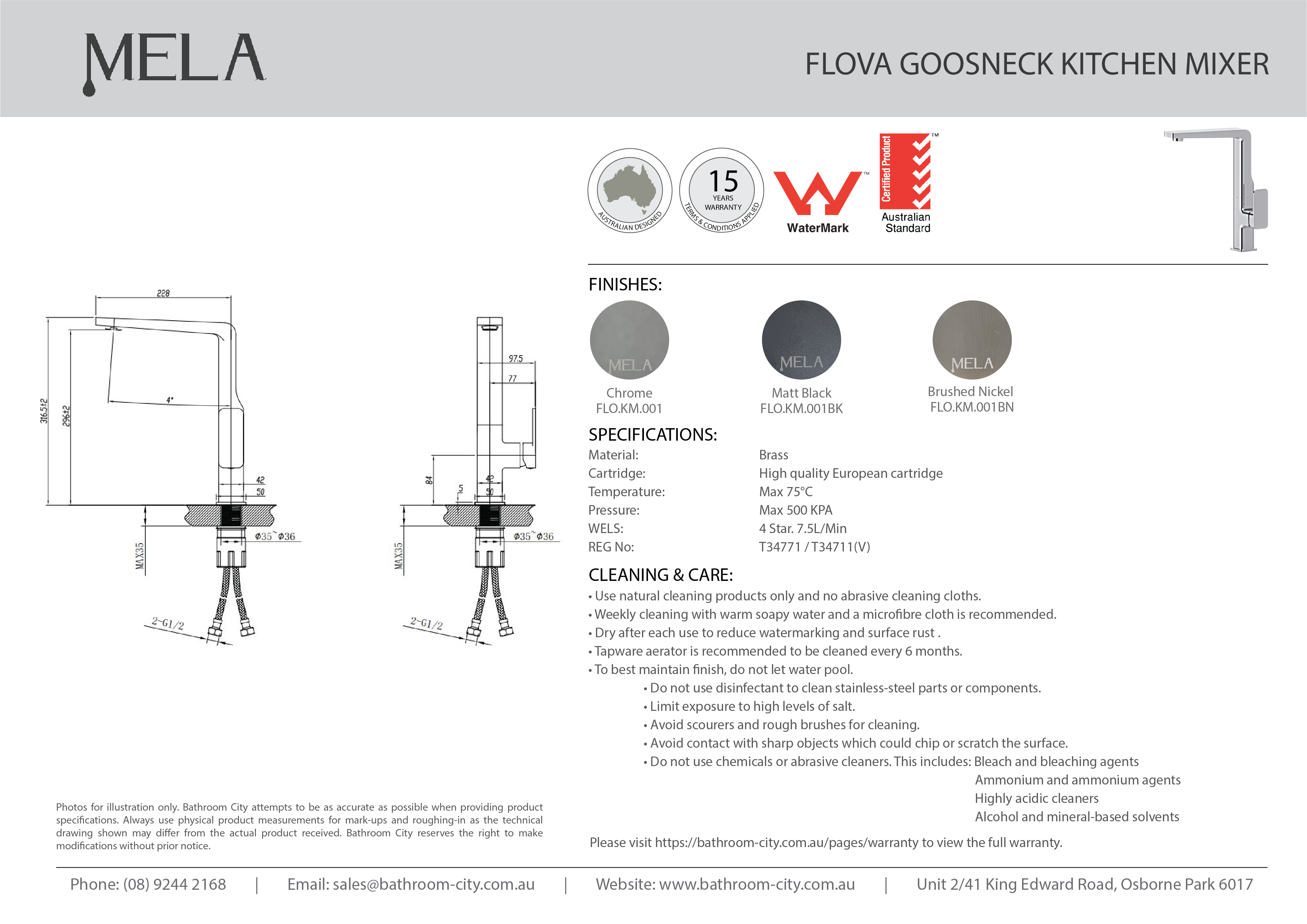 | Model Name | MELA- FLOVA Gooseneck Kitchen Mixer Chrome |