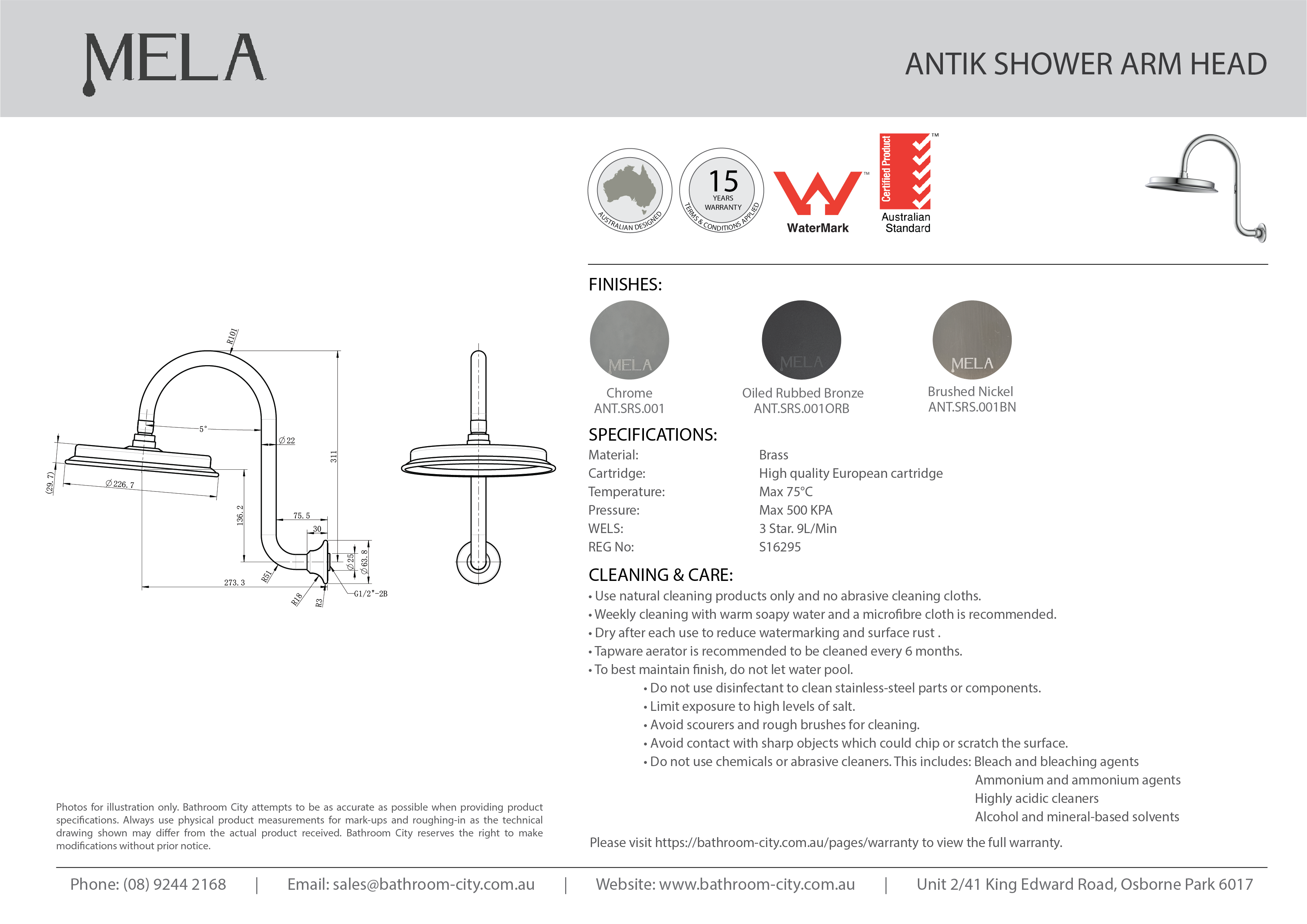 MELA - ANTIK Shower Arm Head Oiled Rubbed Bronze |