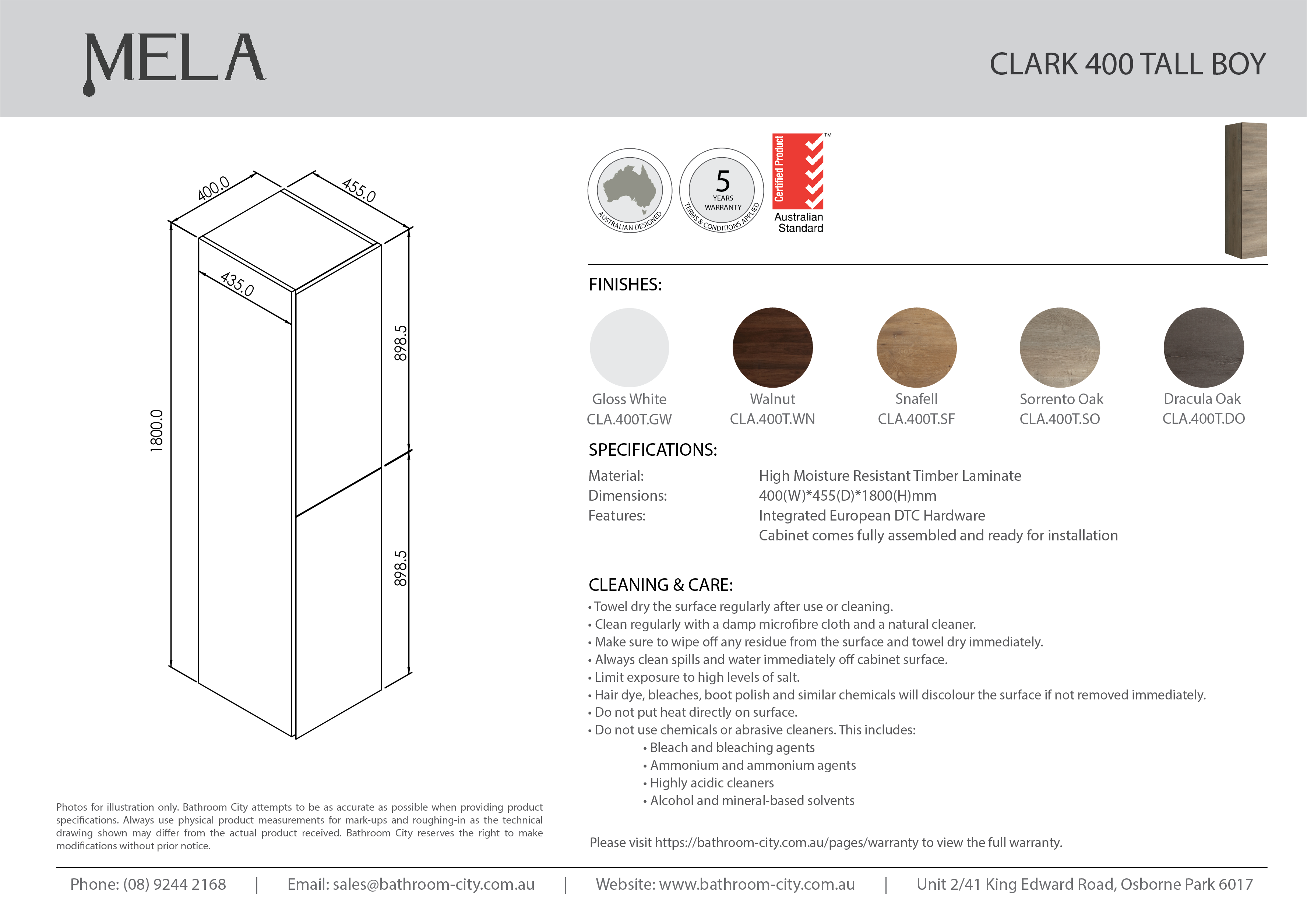 MELA - CLARK 400 Sorrento Oak Wall Hung Tallboy