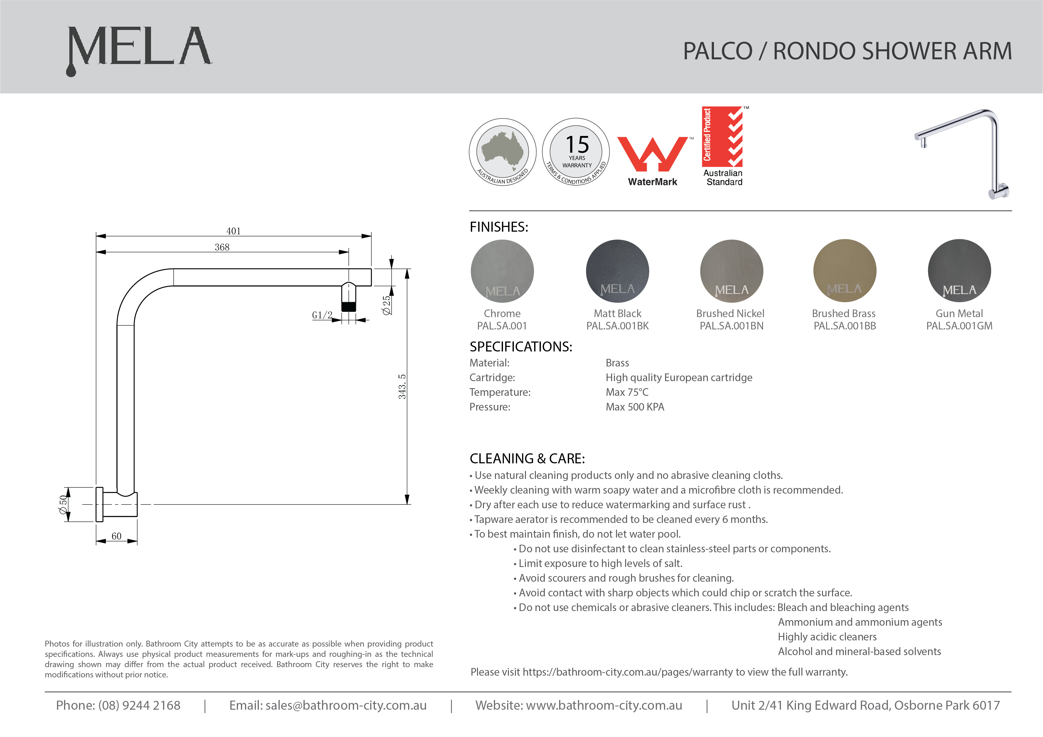 | Model Name | MELA- PALCO/RONDO Shower Arm Brushed Copper |