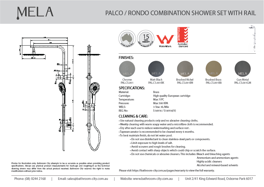 | Model Name | MELA- PALCO/RONDO Twin Combo Shower Set with Rail Brushed Copper |