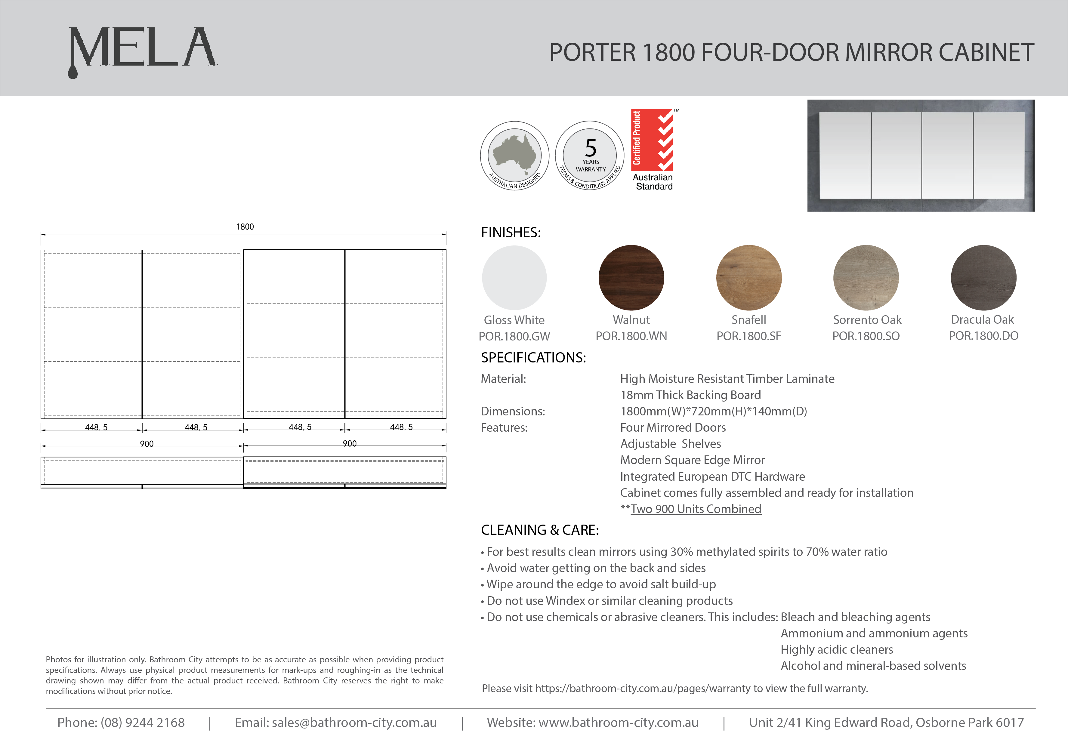 | Model Name | MELA- PORTER 1800 Gloss White Four Door Mirror Cabinet |