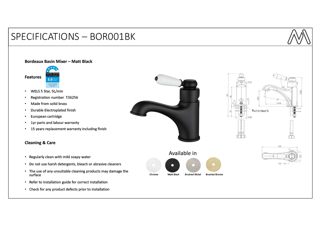 | Model Name | MODERN NATIONAL - BORDEAUX Basin Mixer Black |