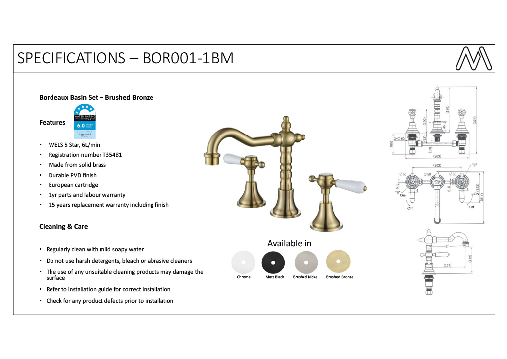 For best results, please follow our Care Guide. Regular cleaning with non-abrasive products will help extend the life of your bathroom fittings and keep them looking new.