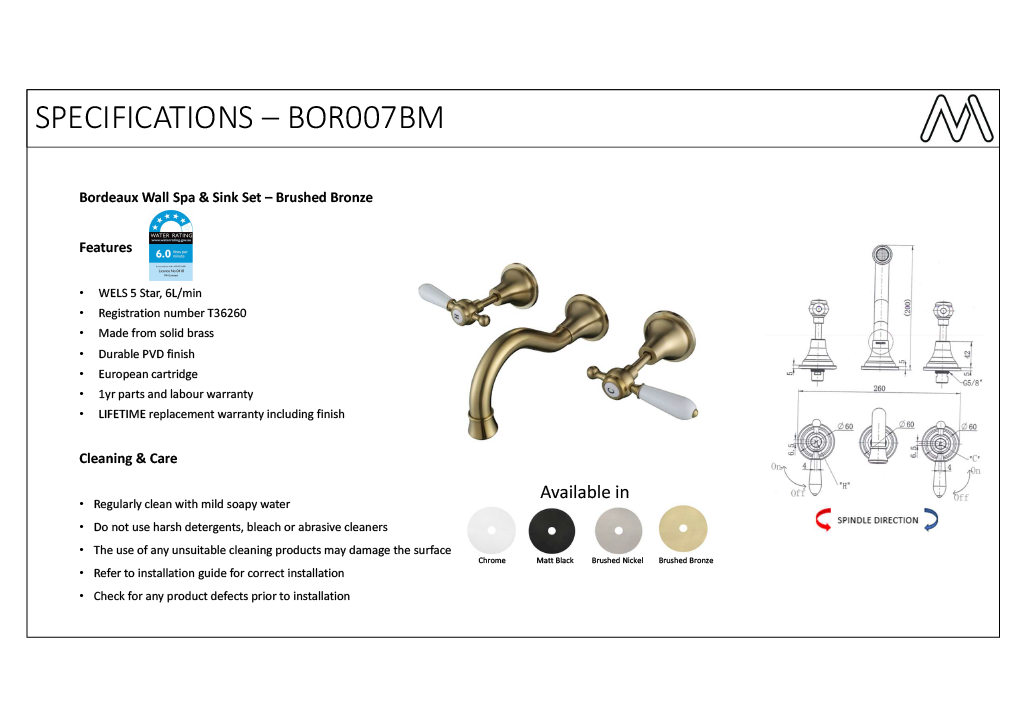 For best results, please follow our Care Guide. Regular cleaning with non-abrasive products will help extend the life of your bathroom fittings and keep them looking new.