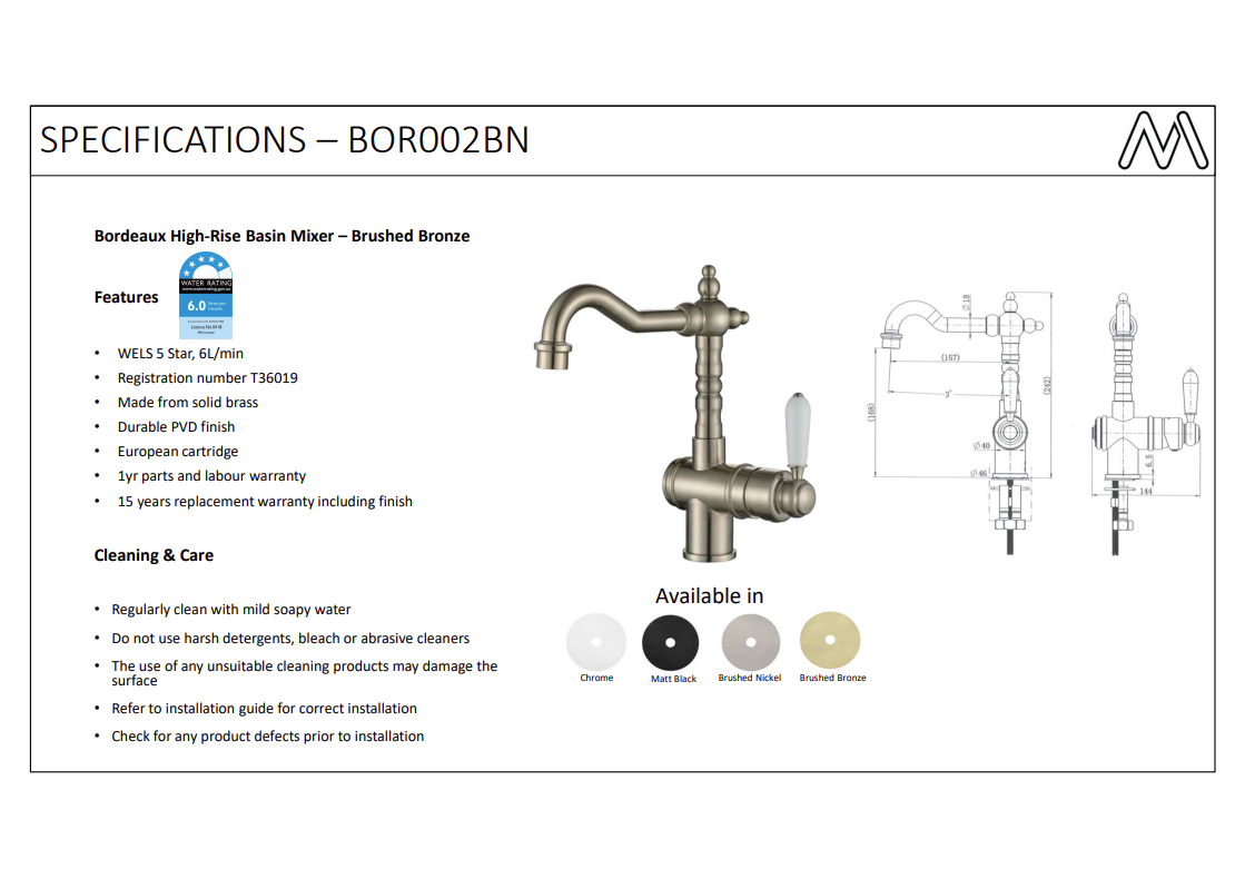 For best results, please follow our Care Guide. Regular cleaning with non-abrasive products will help extend the life of your bathroom fittings and keep them looking new.