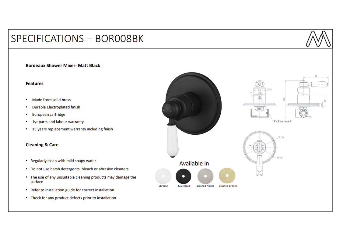Model Name MODERN NATIONAL- BORDEAUX Shower Mixer Matt Black