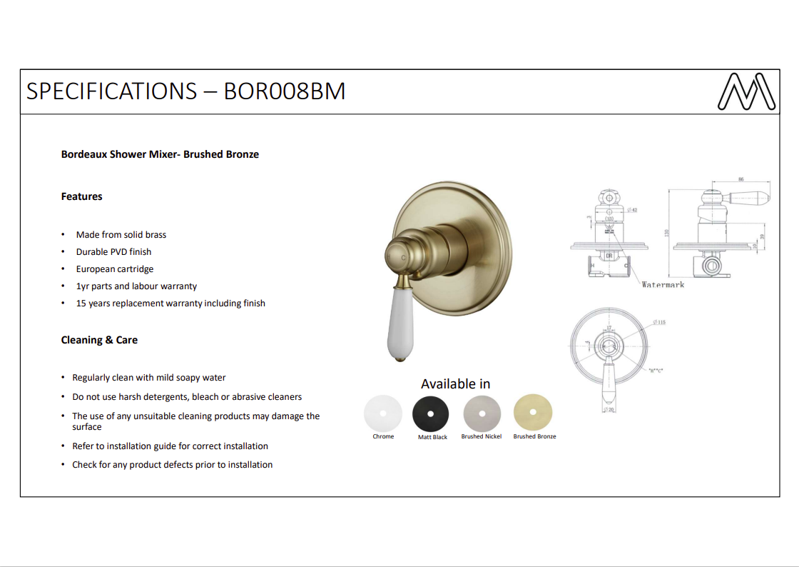 Model Name MODERN NATIONAL- BORDEAUX Shower Mixer Brushed Bronze