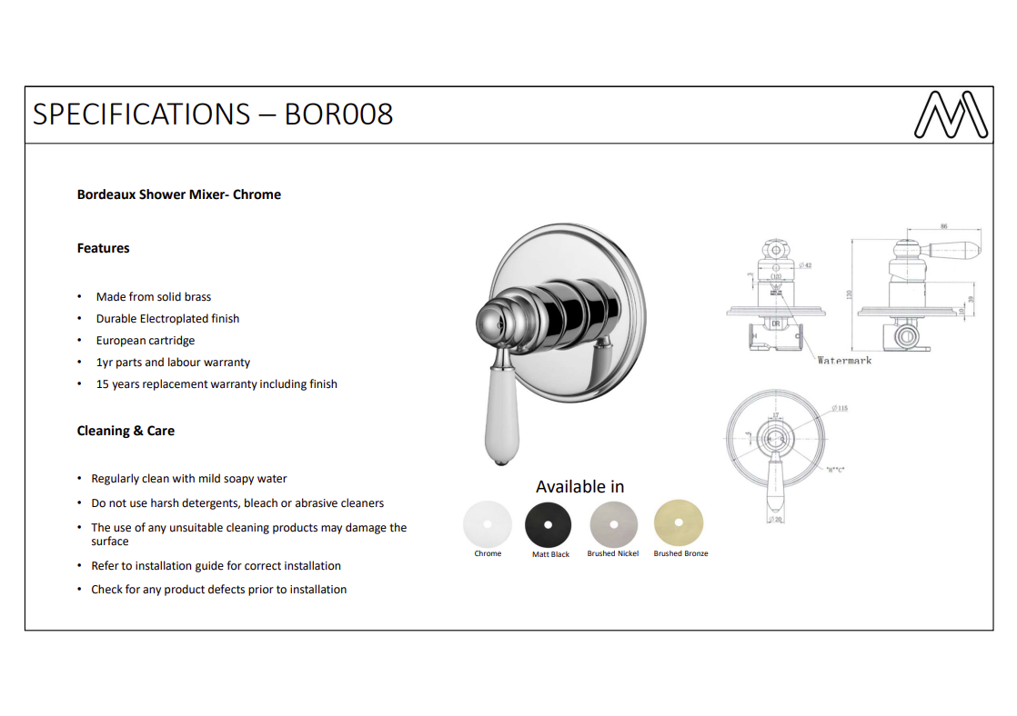 | Model Name | MODERN NATIONAL- BORDEAUX Shower Mixer Chrome |