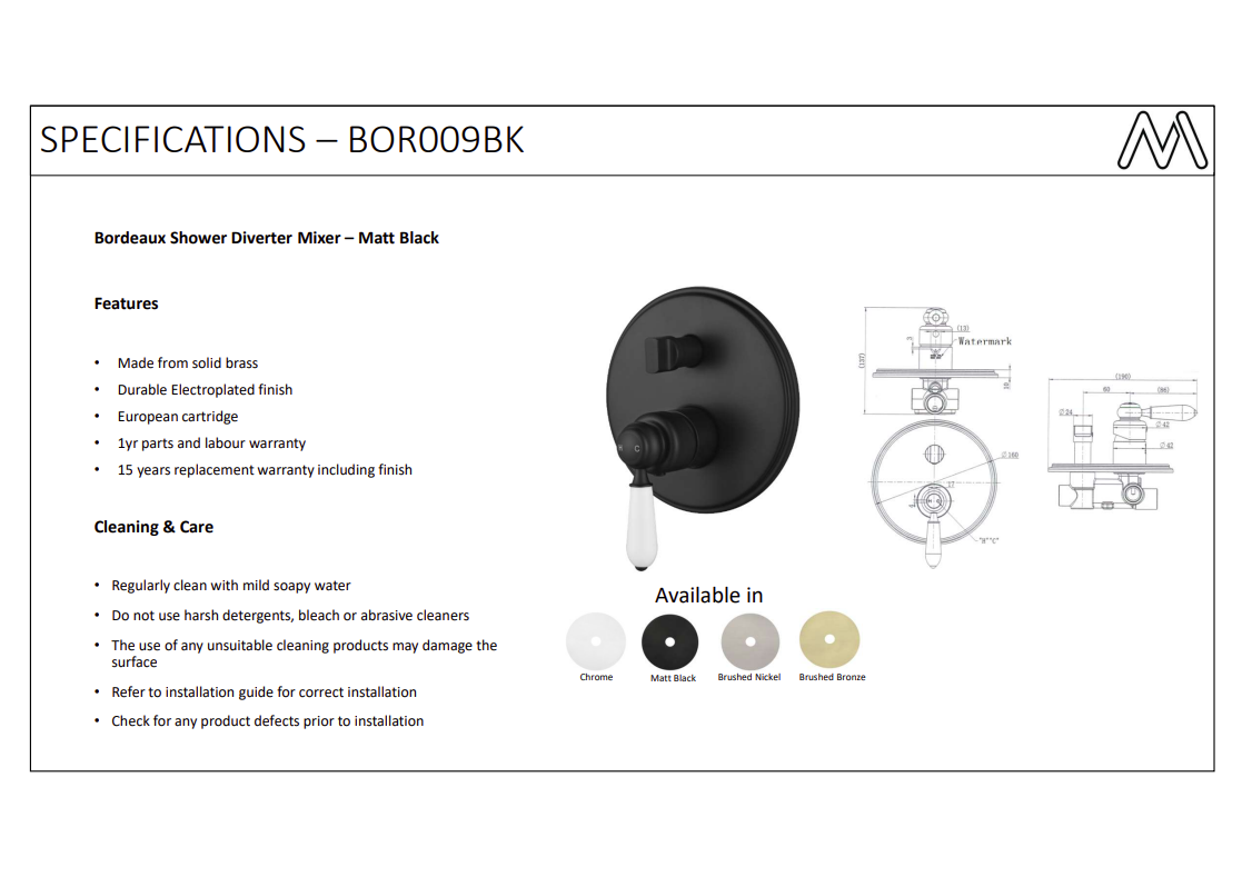 Model Name MODERN NATIONAL- BORDEAUX Shower Mixer with Diverter Matt Black