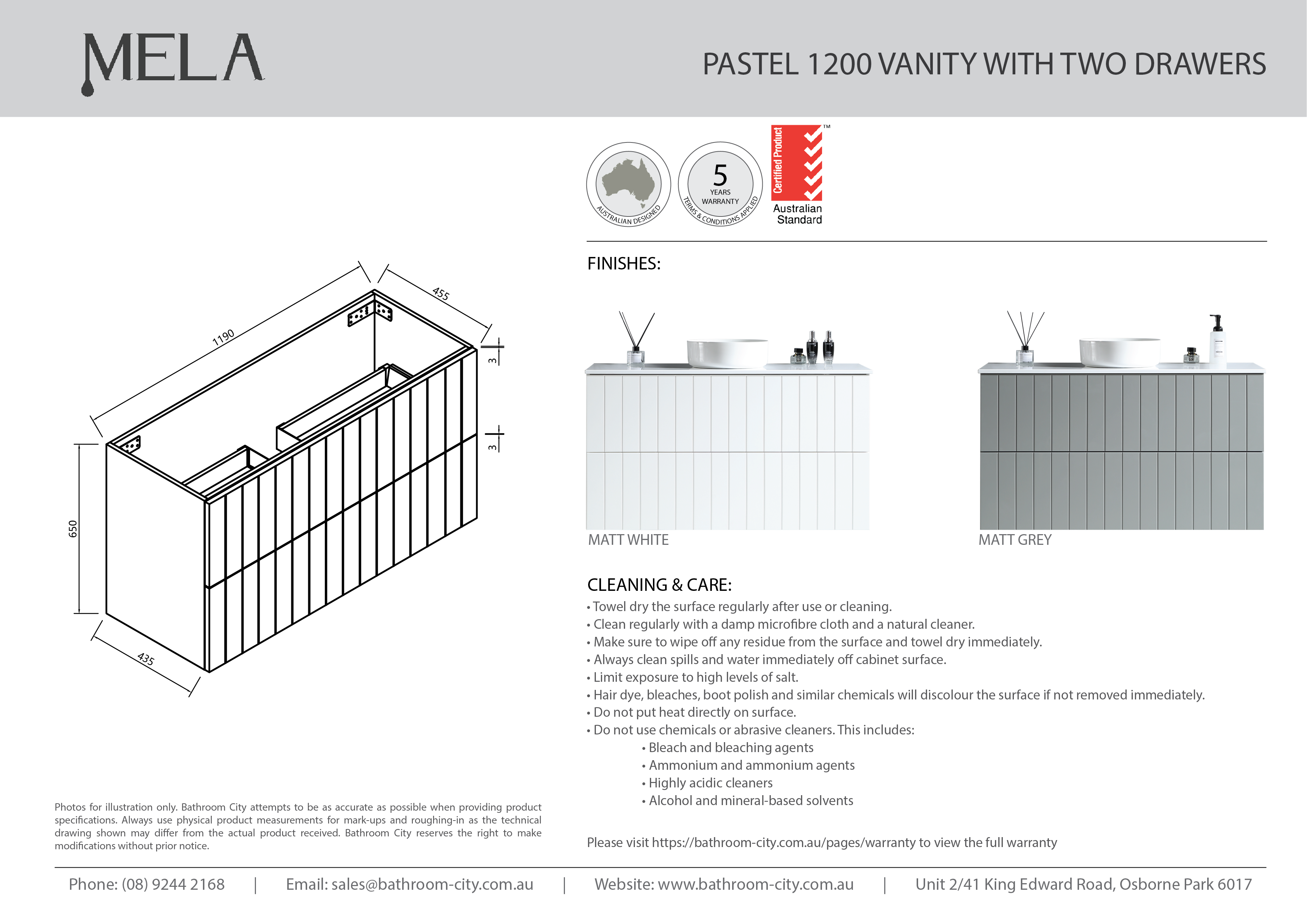 Yes. Bathroom City offers custom vanities with options for size, materials, benchtops, basins, and finishes. This ensures your vanity perfectly fits your bathroom space and style. (Please refer to our Care Guide for cleaning and maintenance tips.)