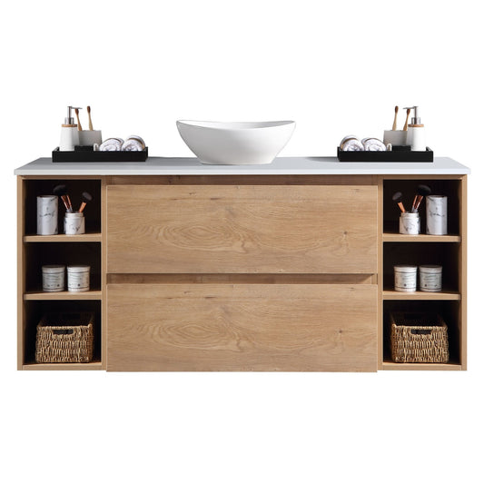 MELA - CLARK 1500 Walnut Wall Hung Vanity with 2 Drawers and 2 Open Shelves