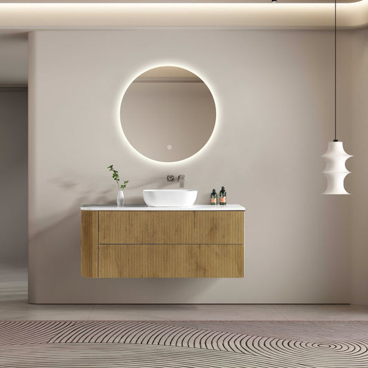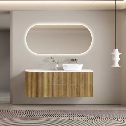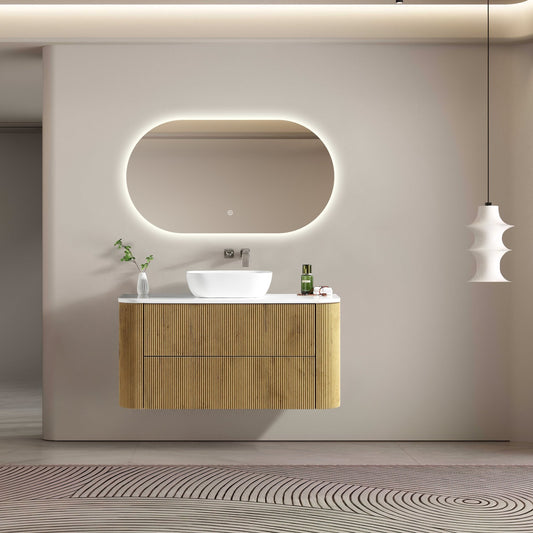 MELA - BRITTANY 1200 Oak Fluted Curved Wall Hung Vanity with 2 Drawers