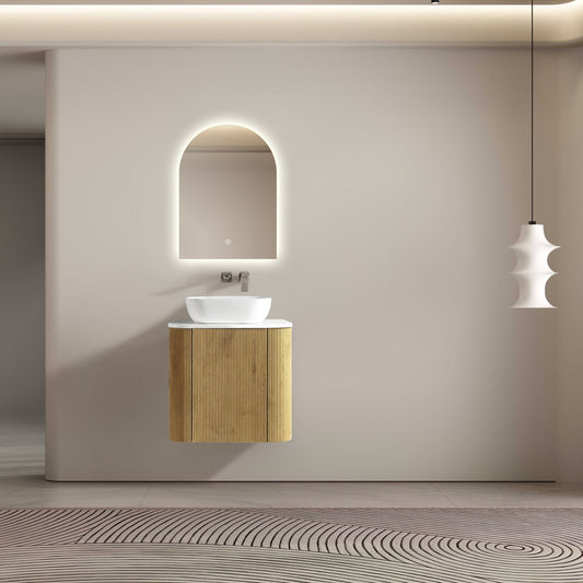 MELA - BRITTANY 600 Oak Fluted Curved Wall Hung Vanity with Cupboard