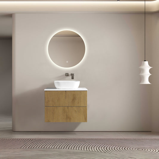 MELA - BRITTANY 750 Oak Fluted Wall Hung Vanity with 2 Drawers