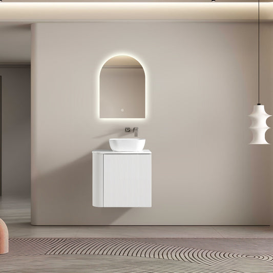 MELA - BRITTANY 600 Matt White Fluted Curved Wall Hung Vanity with Cupboard