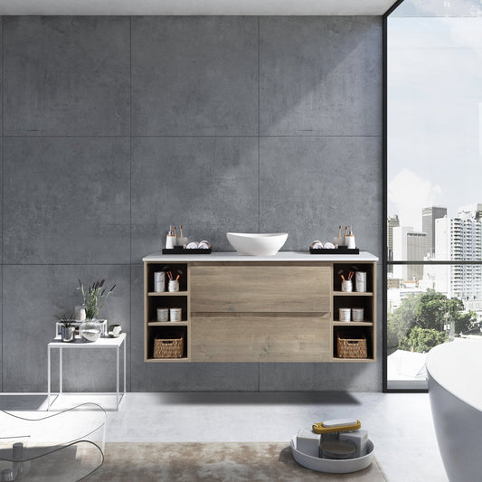 MELA - CLARK 1200 Sorrento Oak Wall Hung Vanity with 2 Drawers and 2 Open Shelves