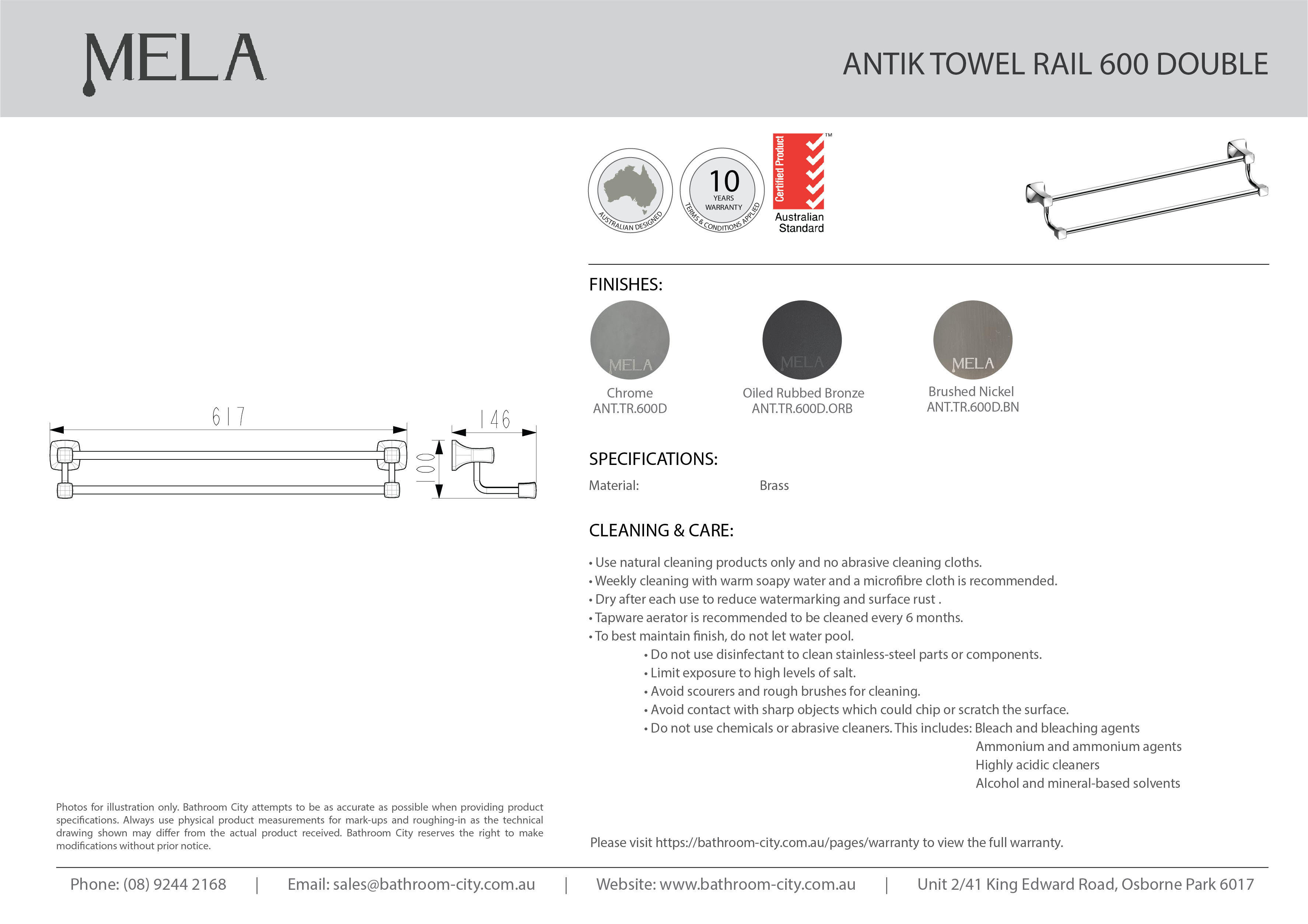 MELA- ANTIK 600 Double Towel Rail Brushed Nickel |
