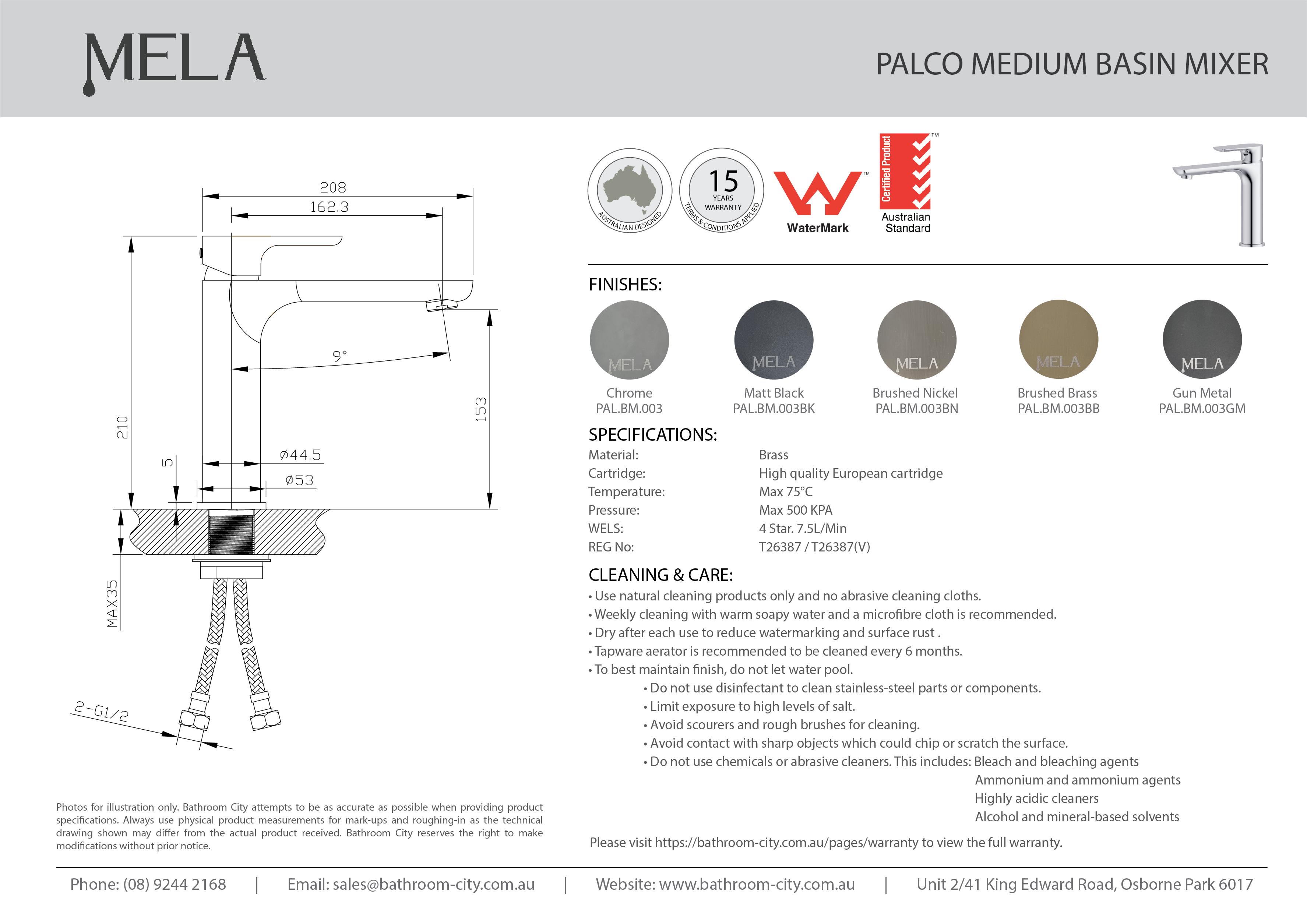 | Model Name | MELA- PALCO Medium Basin Mixer Gun Metal |