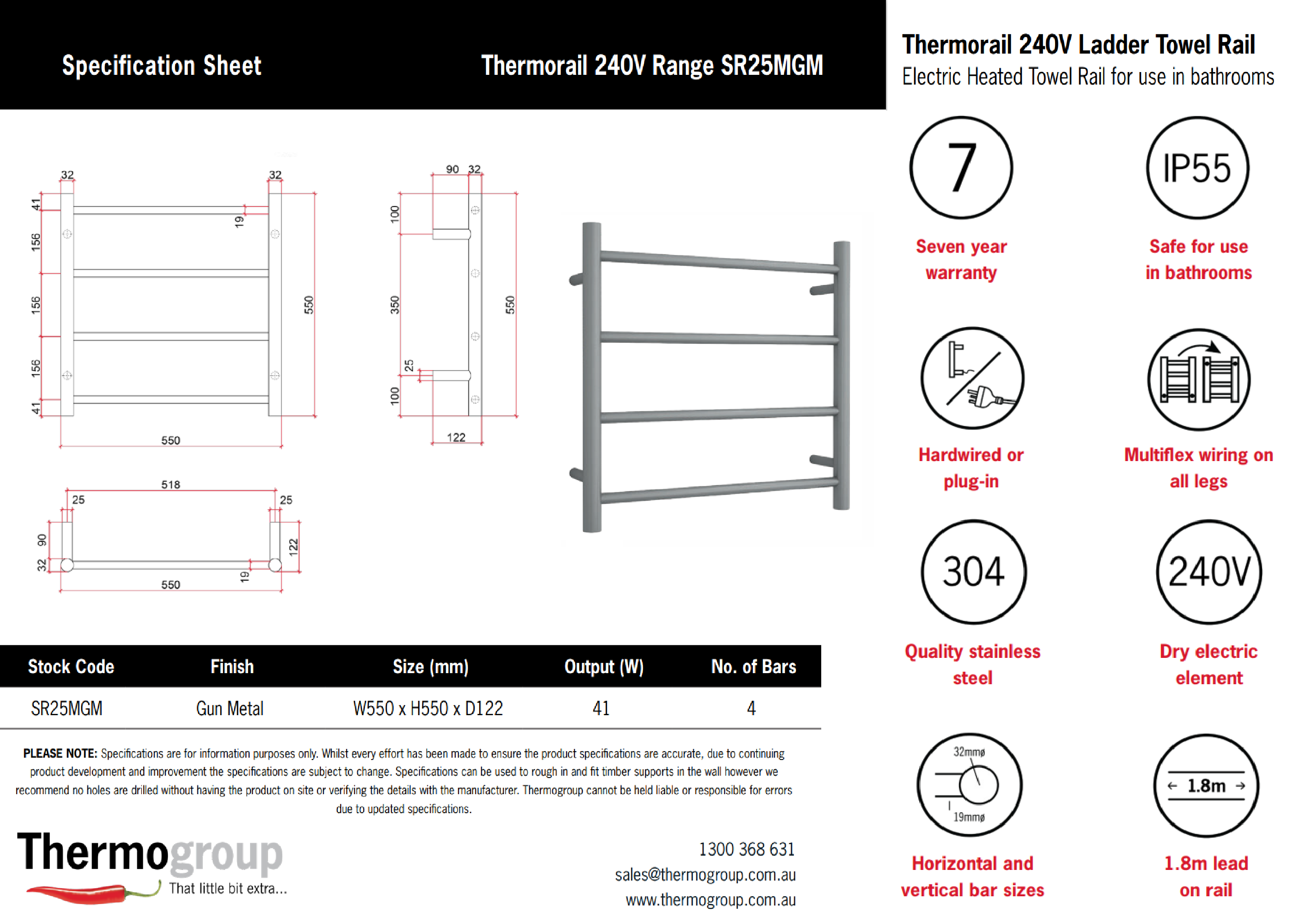 | Model Name | THERMORAIL- SR25MGM Gun Metal Round Ladder Heated Towel Rail |