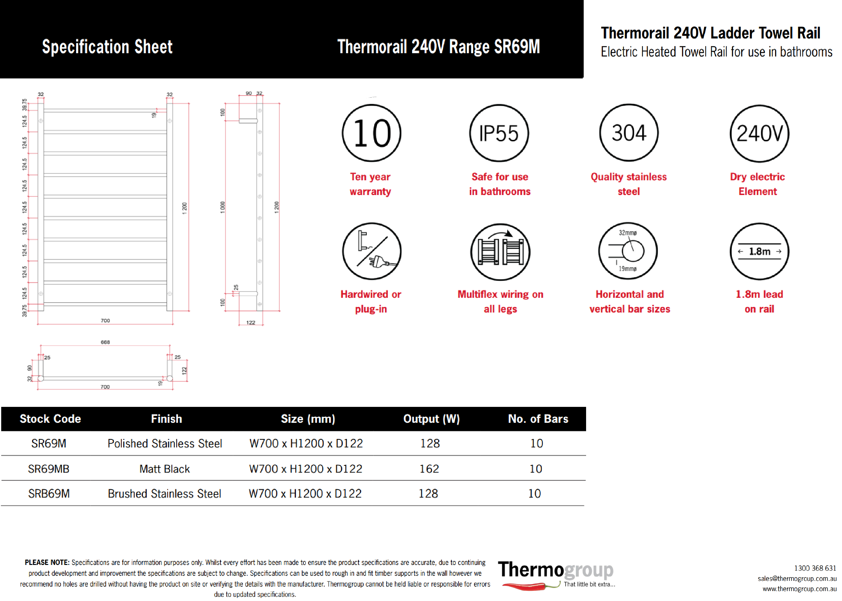| Model Name | THERMORAIL- SR69MB Matt Black Straight Round Heated Ladder Rail |
