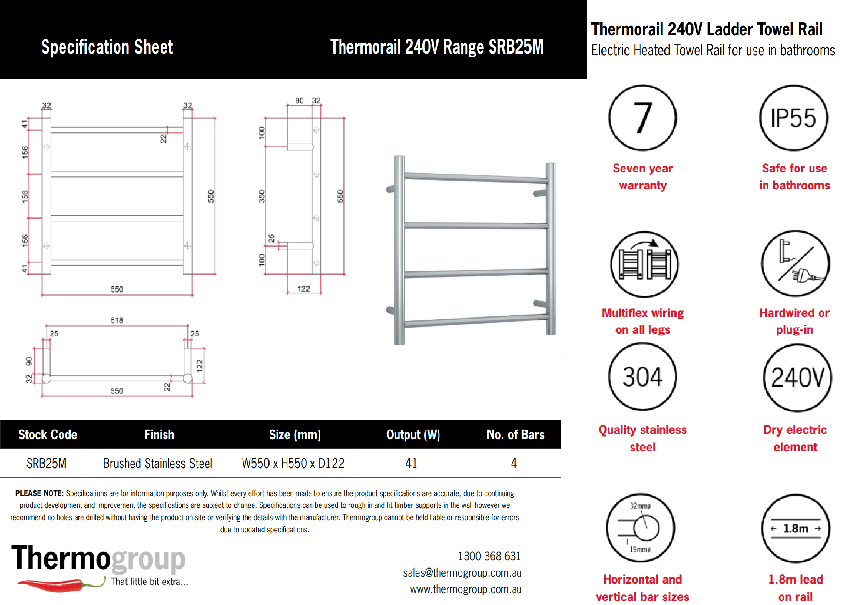| Model Name | THERMORAIL- SRB25M Brushed Straight Round Ladder Heated Towel Rail |