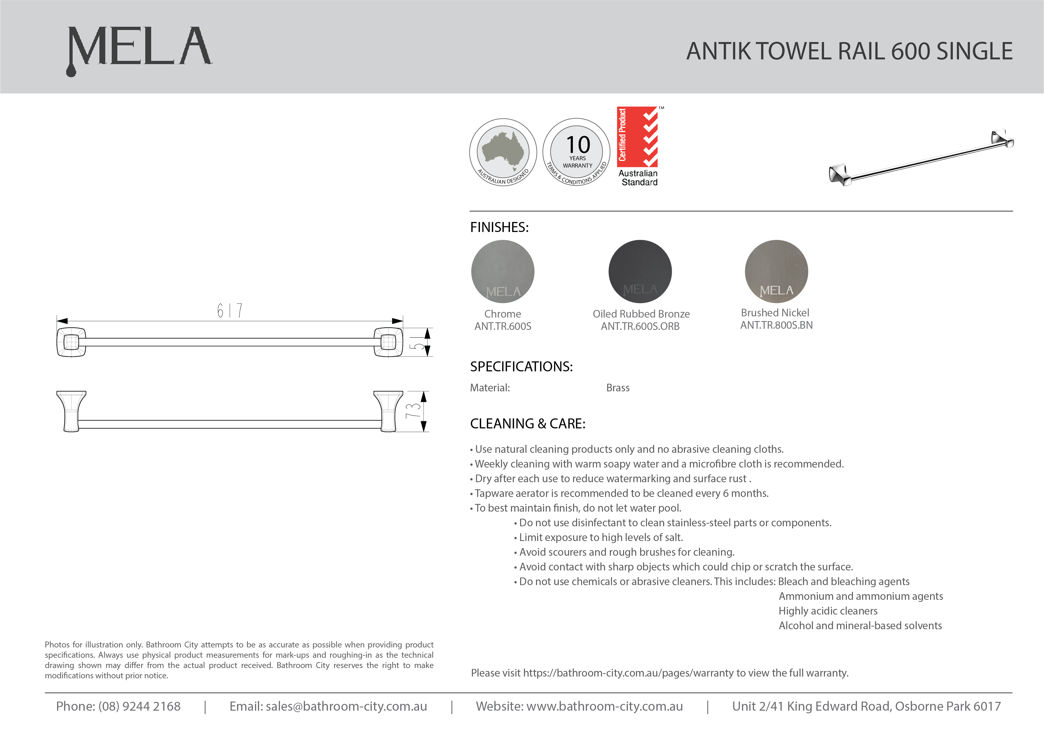 MELA- ANTIK 600 Single Towel Rail Chrome