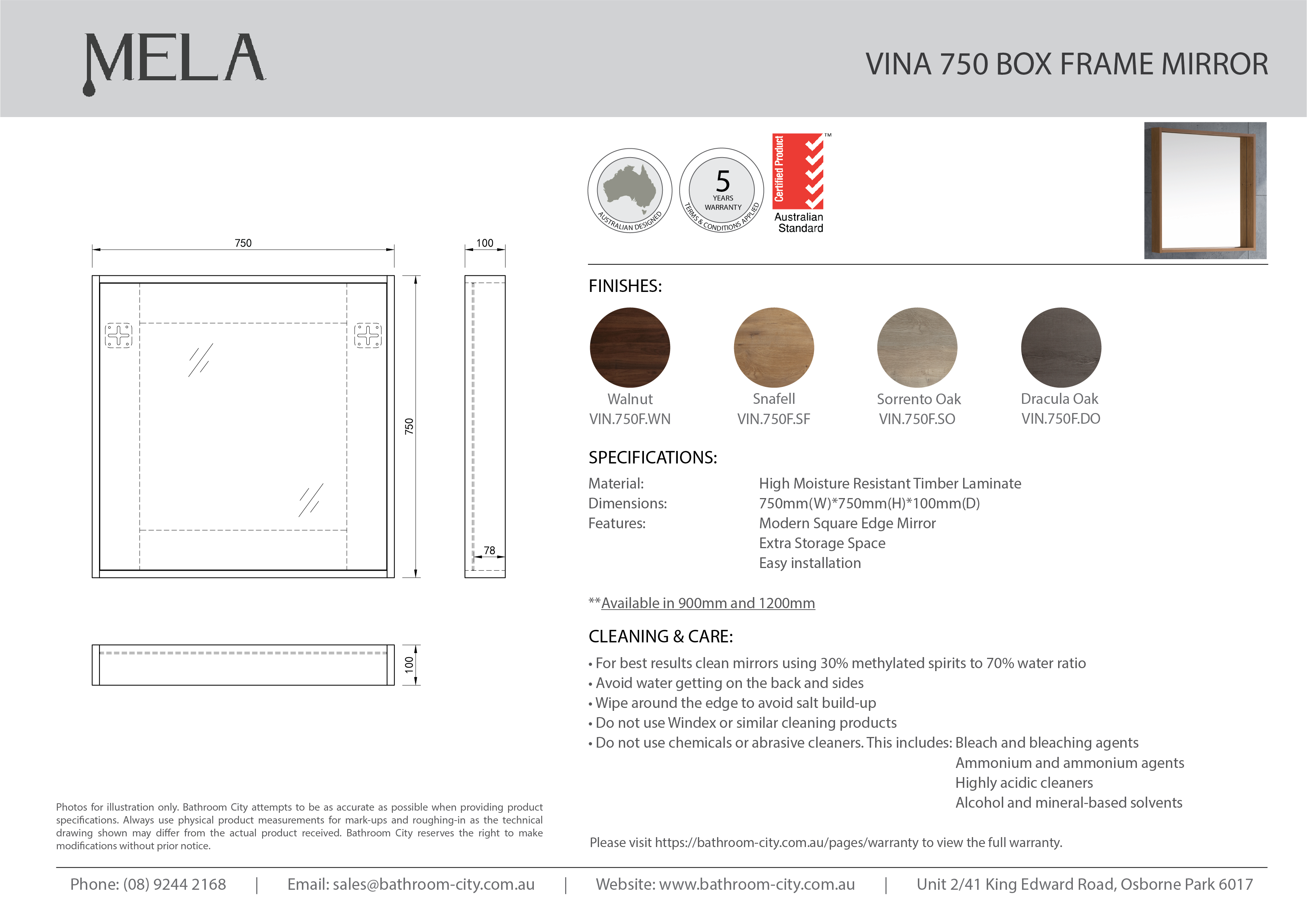 MELA- VINA 750 Walnut Box Frame Mirror |