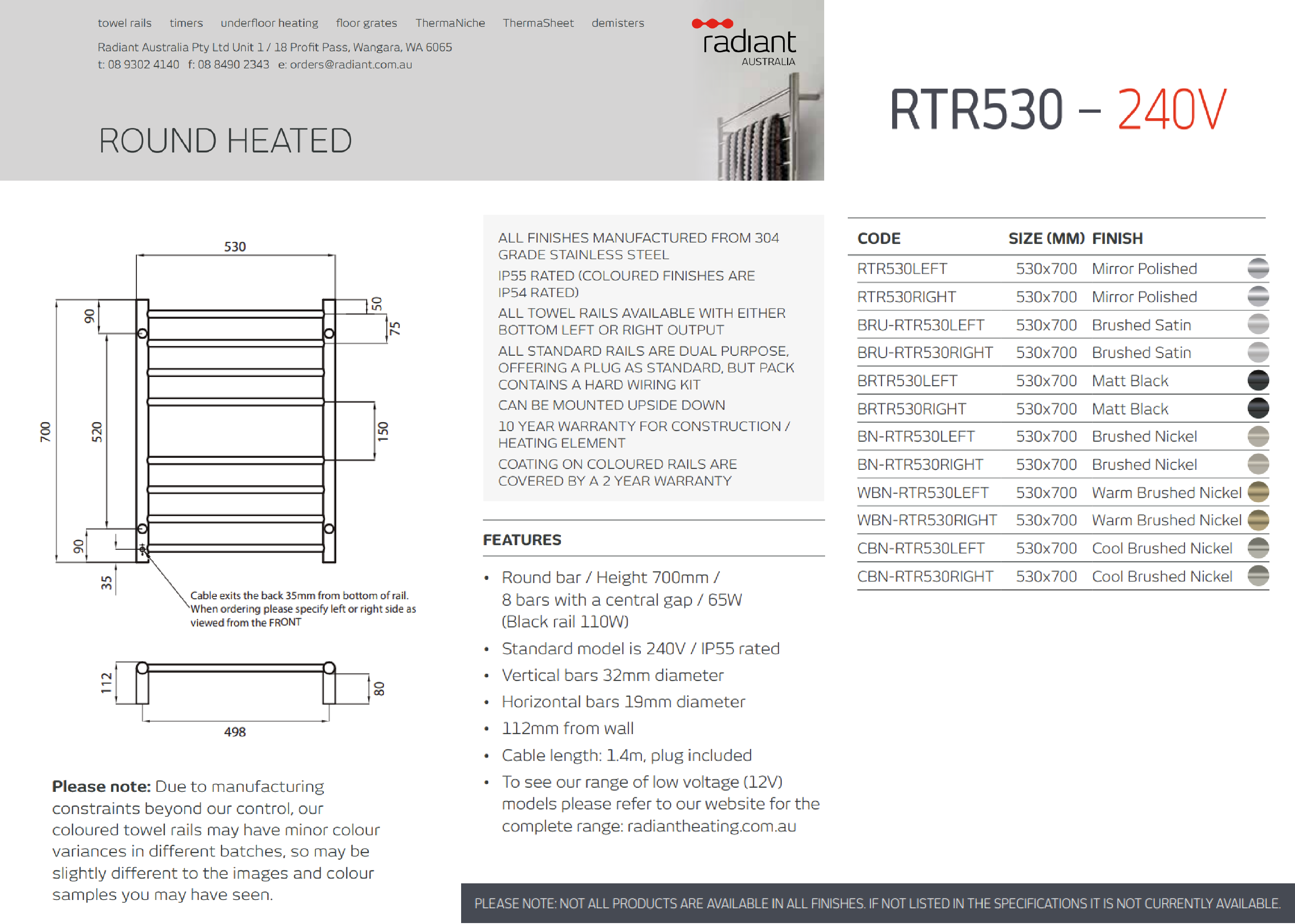 RADIANT - BRTR530 Heated Round Ladder 530x700mm Matt Black |